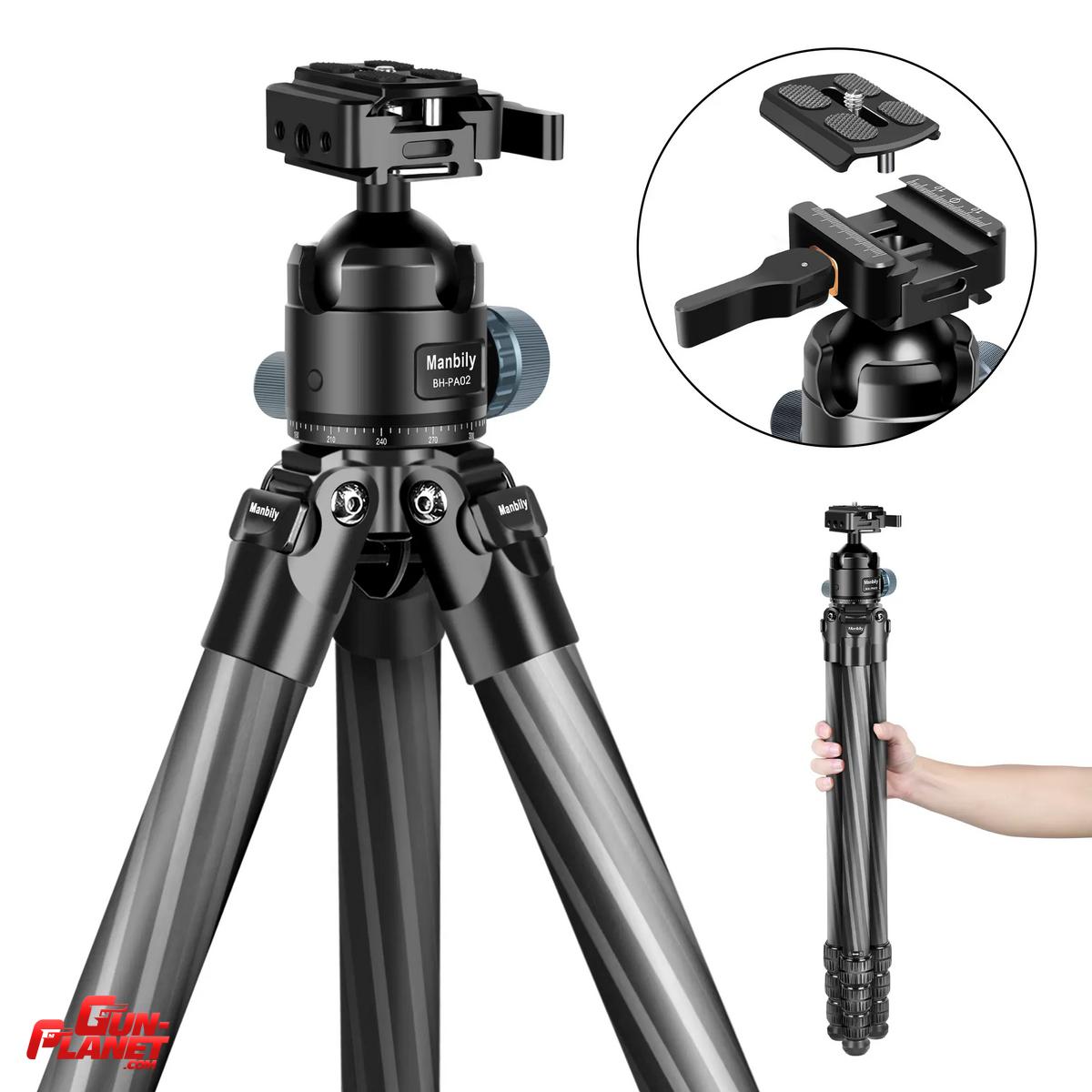 Trípode de fibra de carbono Manbily WZ-324PA para tiro de precisión