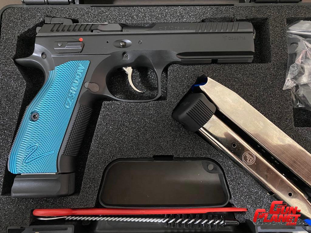 Buenas.por lo oscuro de las fotos es pavonado?sale con 2 cargadores caja y manual?saludos