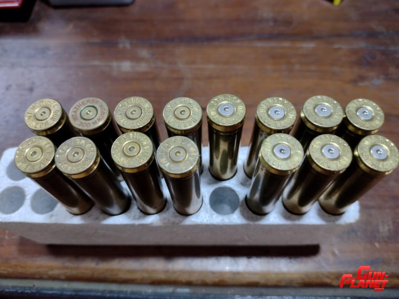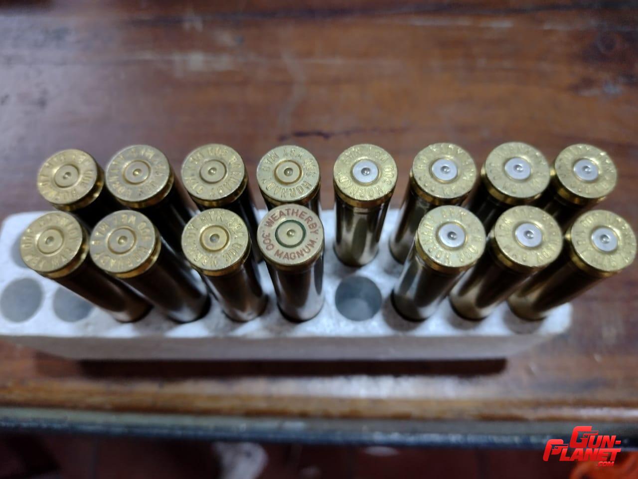 vendo lote de 15 vainas 300.weatherby mg, de las cuales 8 son de primer disparo y 7 tienen una recarga