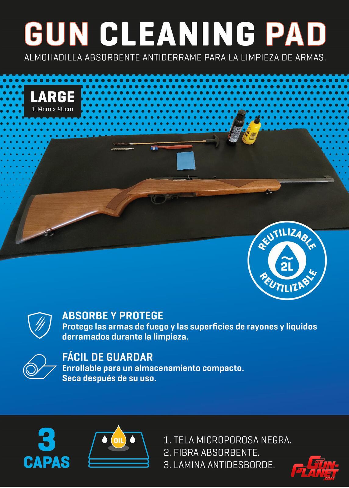 Estas almohadillas absorben el aceite que usamos para la limpieza, siendo capaz de retener más de un litro del mismo. A su vez, protege tus armas y la mesa de trabajo, evitando de esta manera posibles ralladuras y/o manchas.