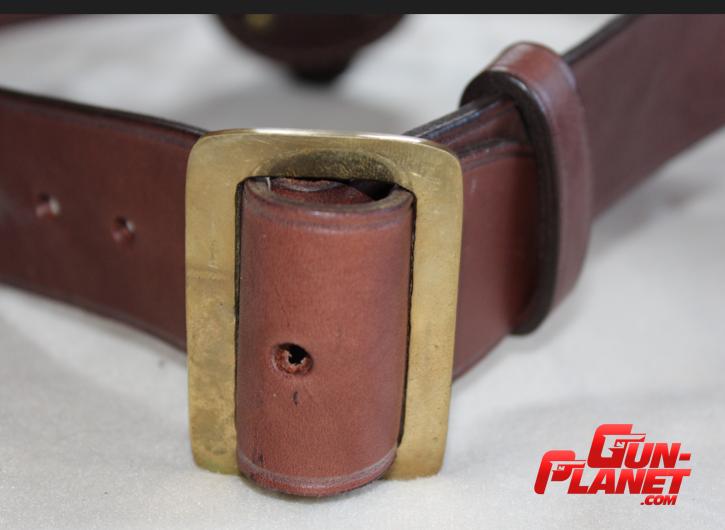 CINTURON DE CUERO Y HEBILLA DE BRONCE CON COLECTOR DE VAINAS . EXCELENTE CALIDAD. LARGO 1,25 MTS.