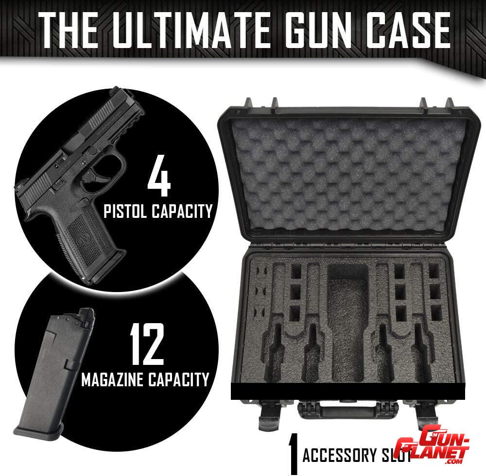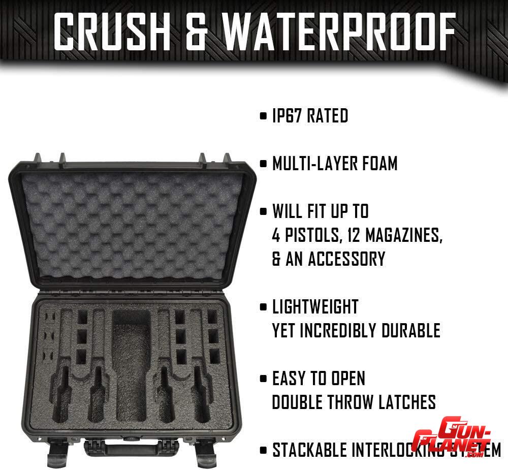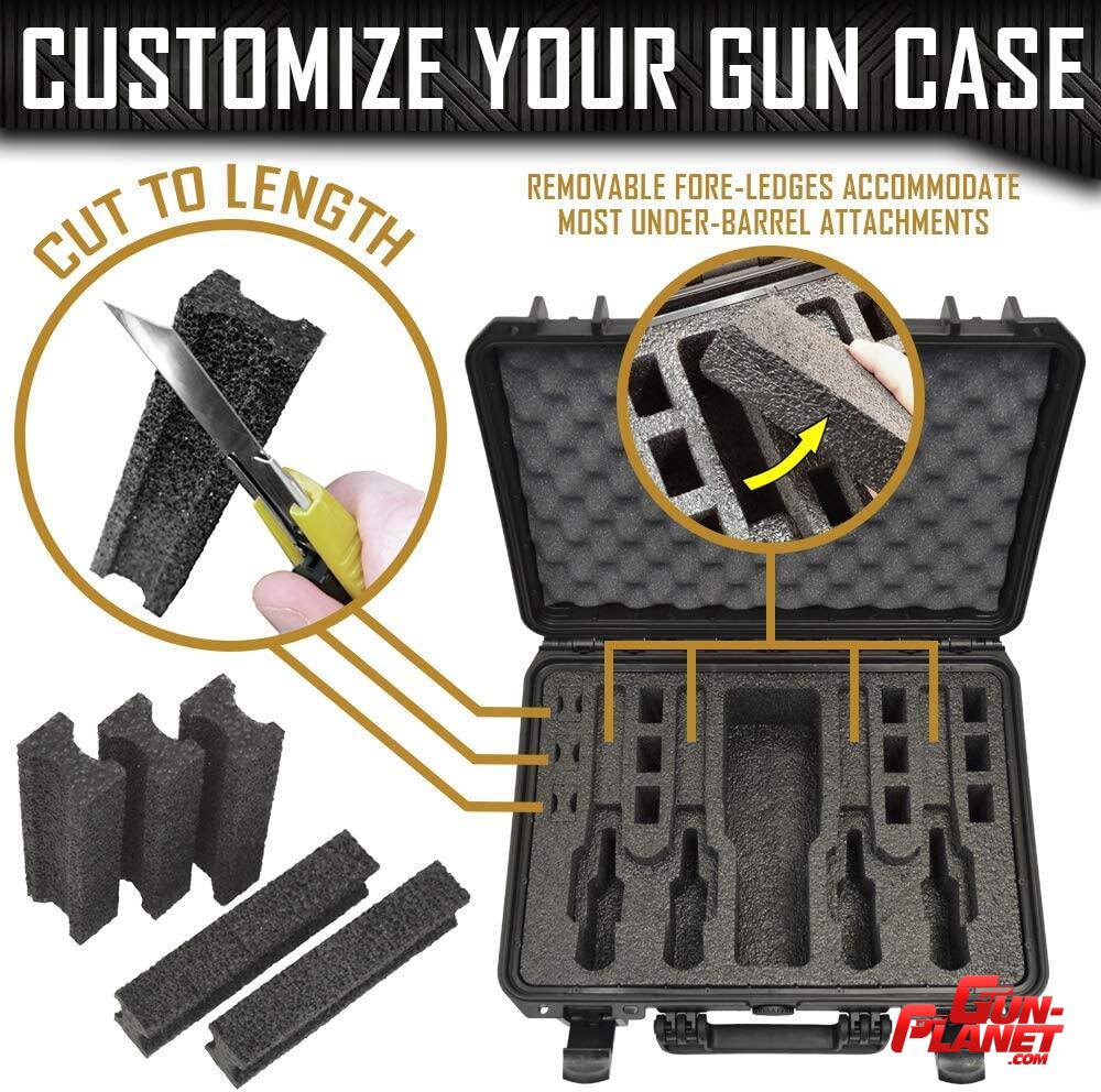 Interior con espuma de polietileno protectora y personalizable. Los tapones de espuma pueden ser cortados a medida y brindan soporte adicional para cargadores más cortos, y las repisas delanteras de espuma extraíbles se adaptan a la mayoría de los accesorios debajo del cañón.