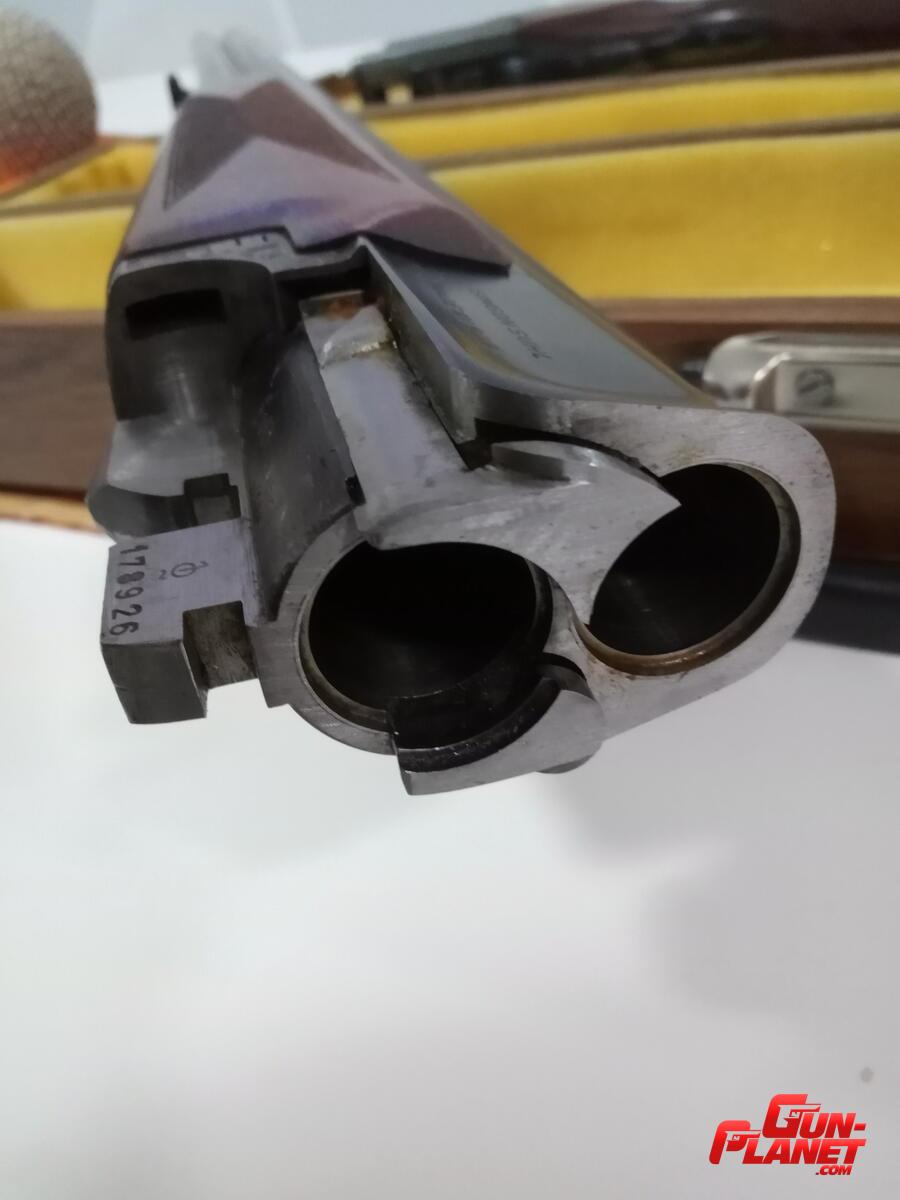 ESCOPETA ALEMANA SUPERPUESTA 2 CAÑOS CALIBRE 12/70 EN ESTADO ORIGINAL Y EXCELENTES CONDICIONES, MODELO 100 E, LARGO CAÑOS 700 mm; CHOKE 1/4" UNTEN Y 3/4 ABEN
