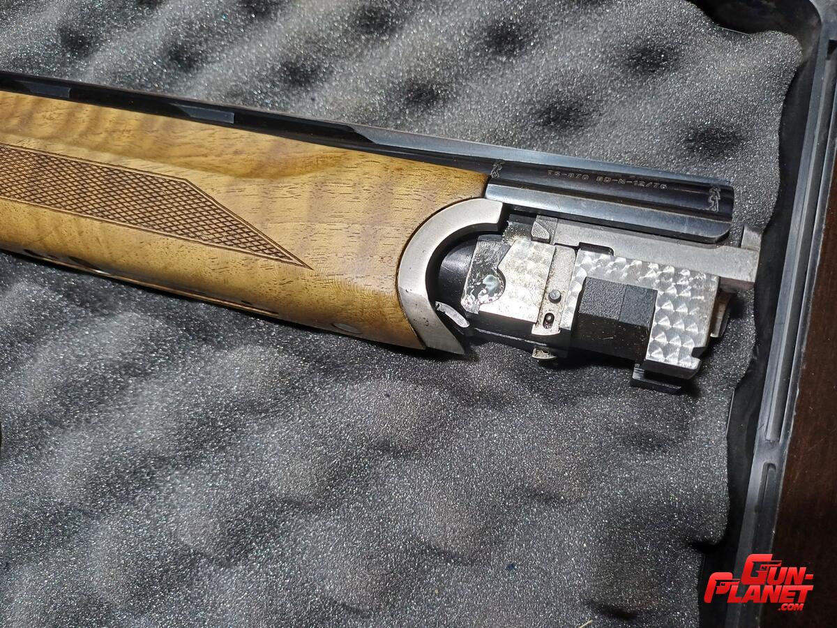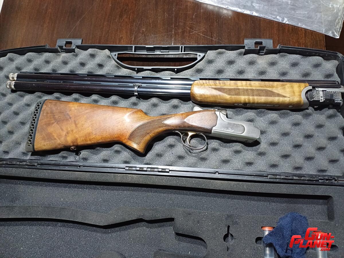 Escopeta superpuesta muy buen estado muy pocos disparos. Selecotor de tiro, extractores automaticos, monogatillo, banda ventilada, canones de 76cm, choques externos cambiables (5), maletin de transporte, culata de nogal. Muy buena escopeta para tiro o caza.