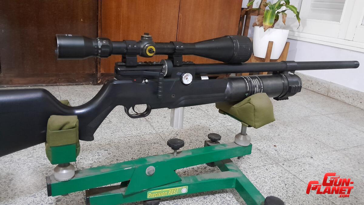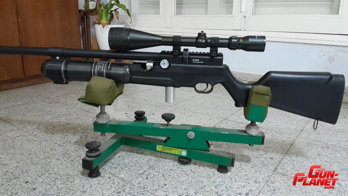 >> La botella es de fibra de carbono, el tubo es un plenum de aire, y el optimizado lo hizo un armero de acá de mi ciudad. Se logró unos 80 tiros a 940fps con 33grains