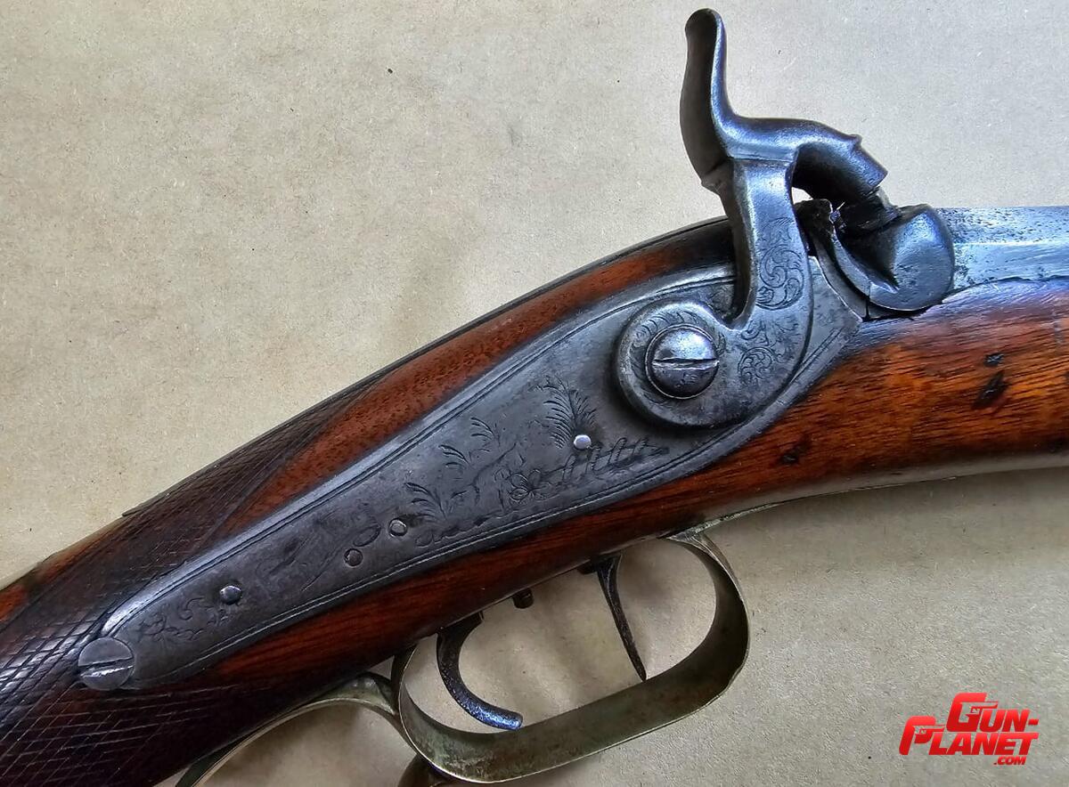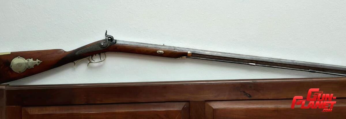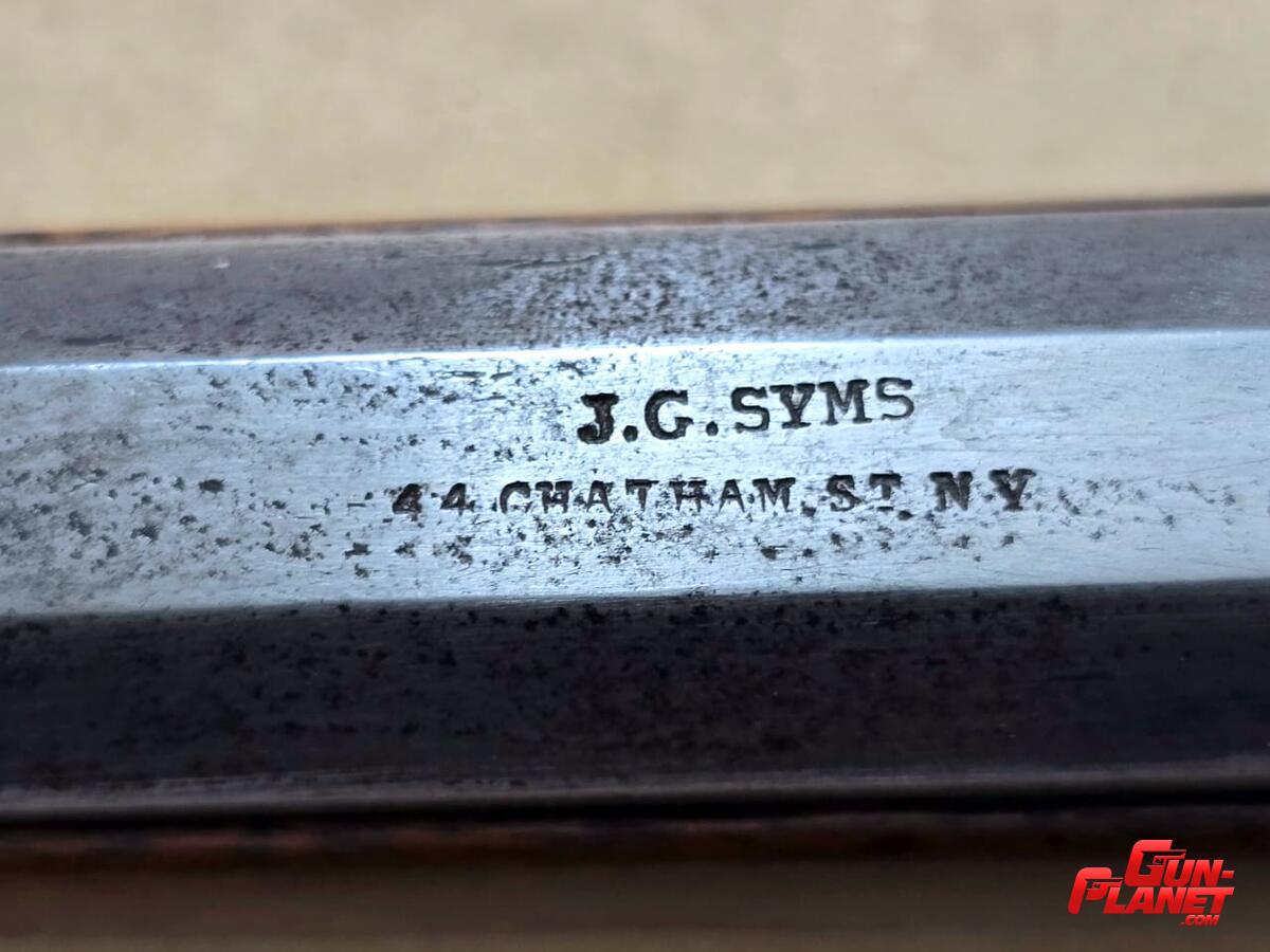 Hermoso fusil de caza original cal. .40, vendido por Syms en 1854 en su armeria de New York. Muy buen estado y 100% funcional.
