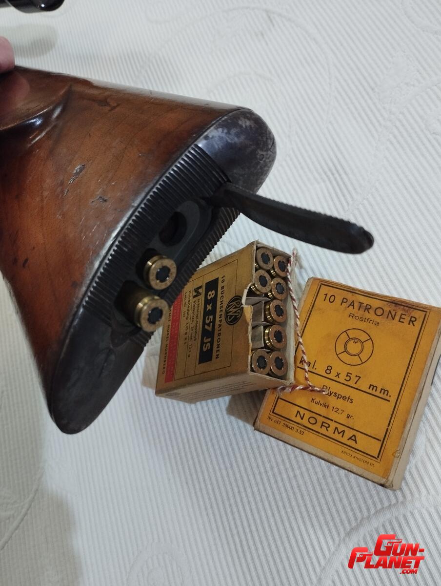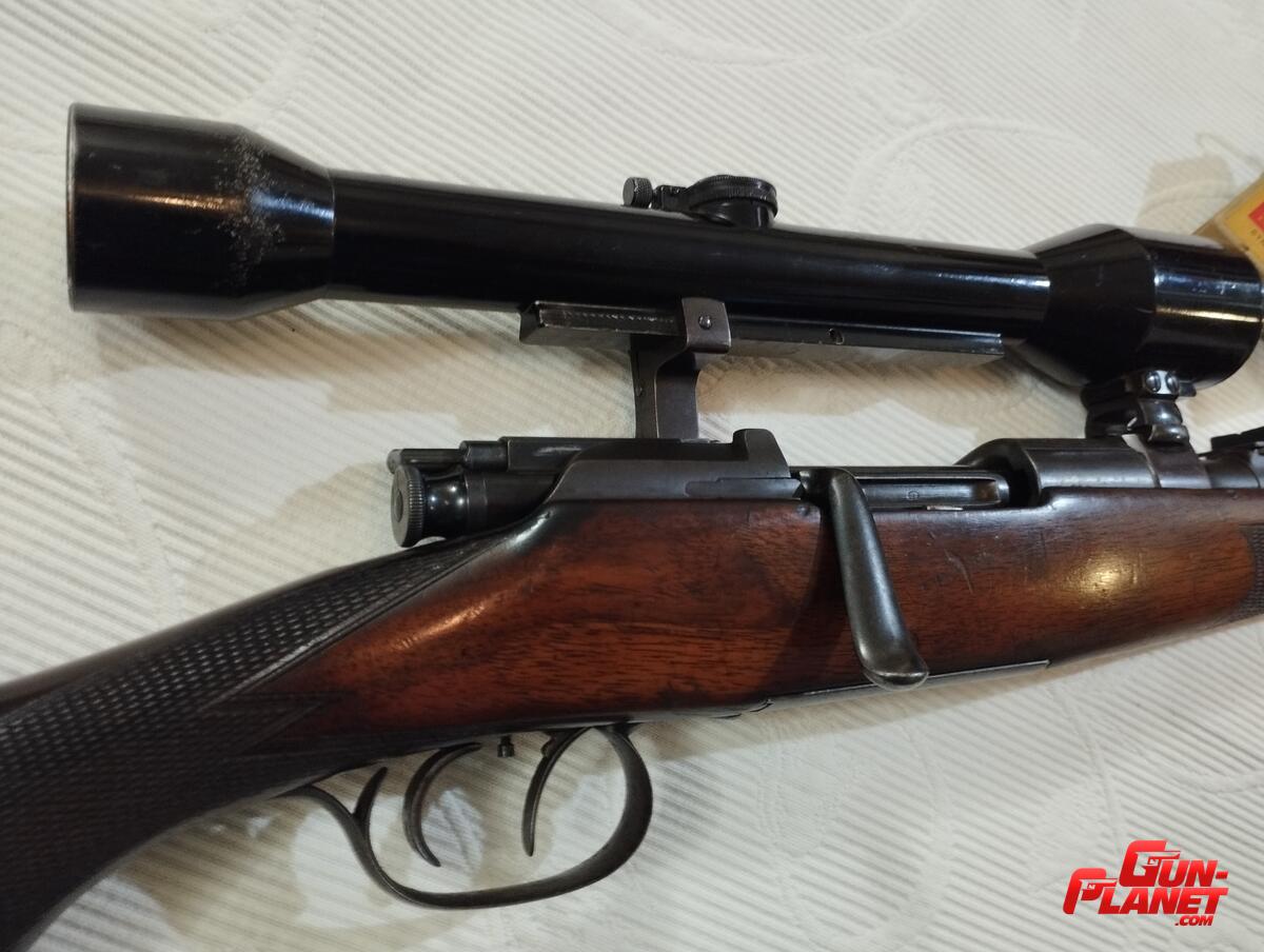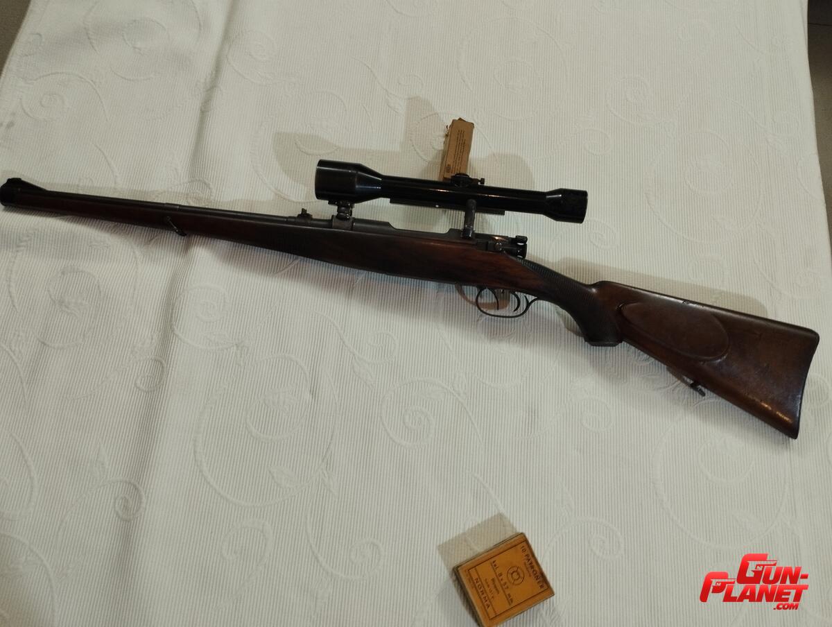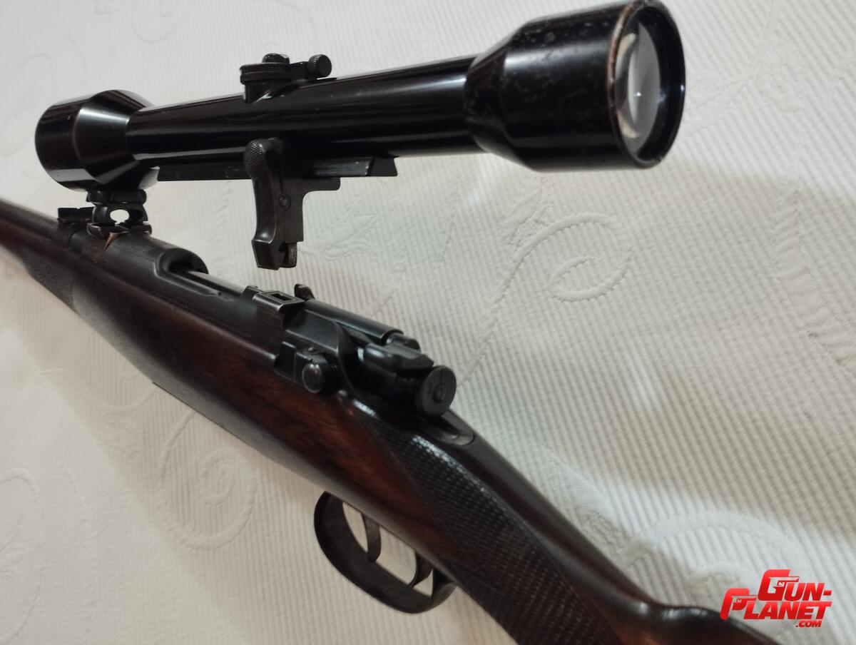 MANNLICHER SCHOENAUER STUTZEN 1924/25 calibre 8x57 JS , rifle totalmente original de epoca ( mira y montajes) , deposito de municion en cantonera metalica, montaje quita/pon elevado , se puede ver el alza y guion , mira Zeiss Jena original numerada , muy buen estado general ,ya que es un fusil PRE WWII , No posee CUIM , se entrega y tranfiere en Tiro Federal de Buenos Aires.