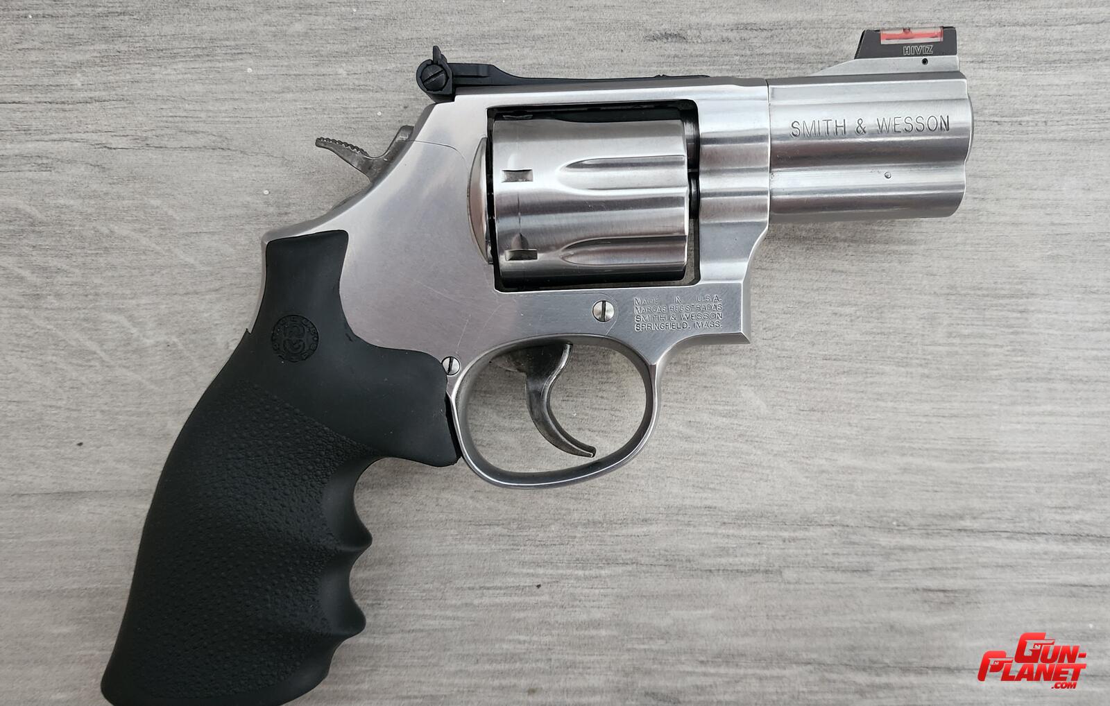 Caño de 3", tambor para 6 cartuchos cal. .357 Magnum y grip de madera.