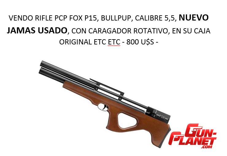 VENDO RIFLE PCP FOX P15, BULLPUP, CALIBRE 5,5, NUEVO JAMAS USADO, CON CARGADOR ROTATIVO, EN SU CAJA ORIGINAL ETC ETC - 800 U$S ESCUCHO OFERTAS SERIAS