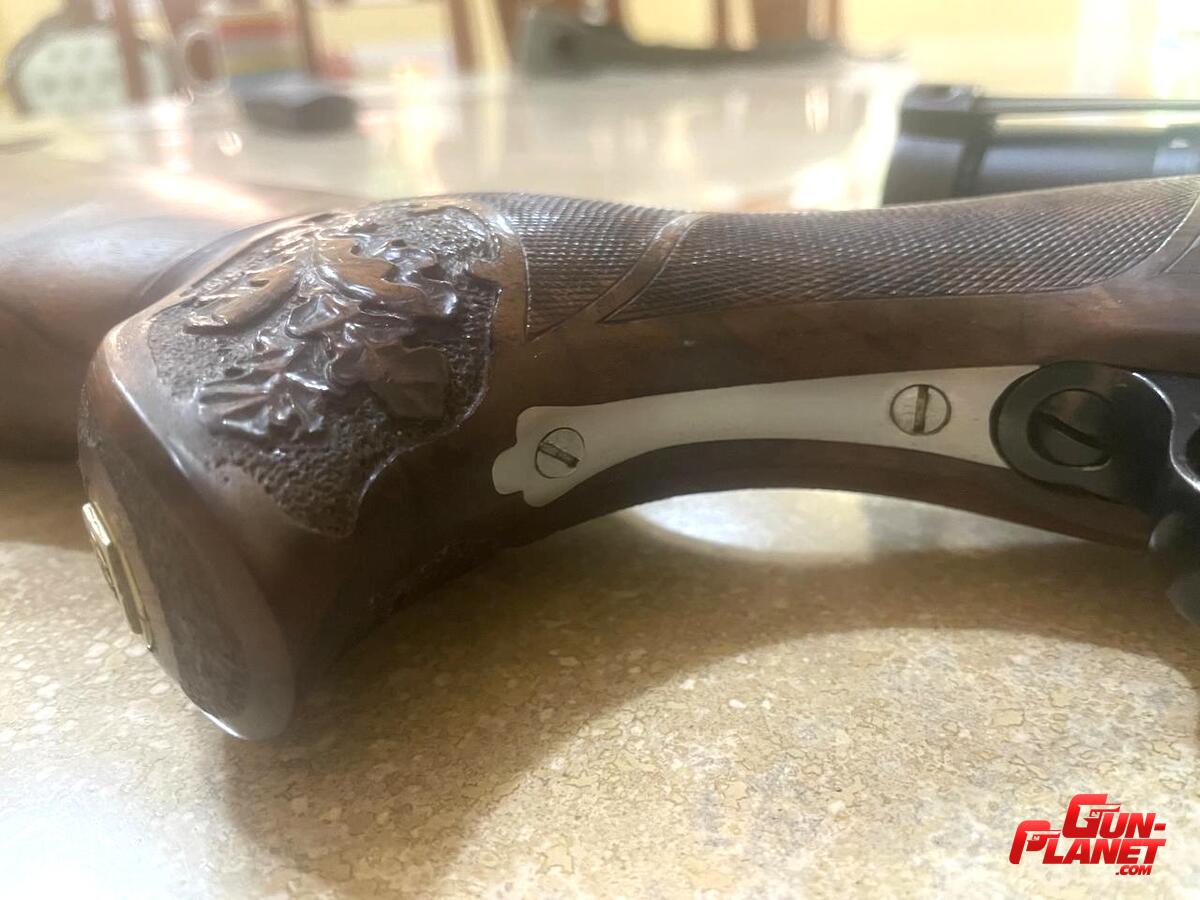 Culata de núcleo de Nogal, incrustaciones en marfil , puntera de olivo de Nogal