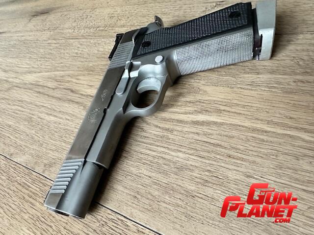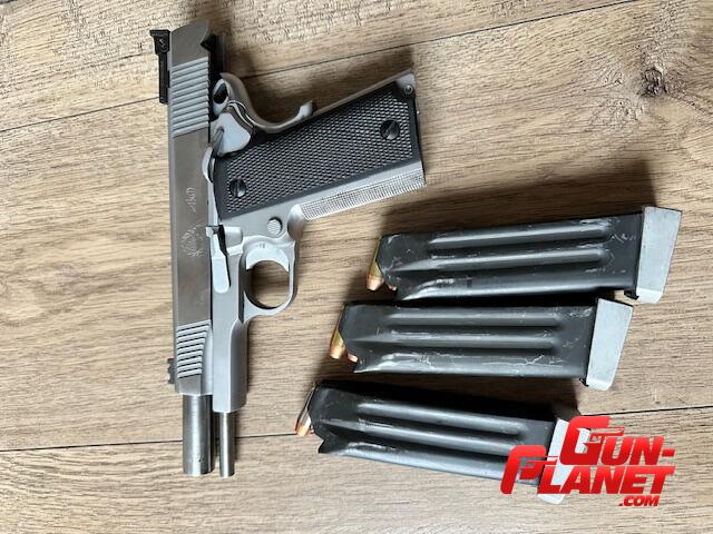 Ideal para tiro práctico división Standard Alza STI, guión de fibra en cola de milano Beavertal, martillo, fiador, desconector, y seguros ambidiestros, todo marca Ed Brown Caño rampeado original Frame segrinado Se entrega con tres cargadores con base de aluminio. Excelente precio