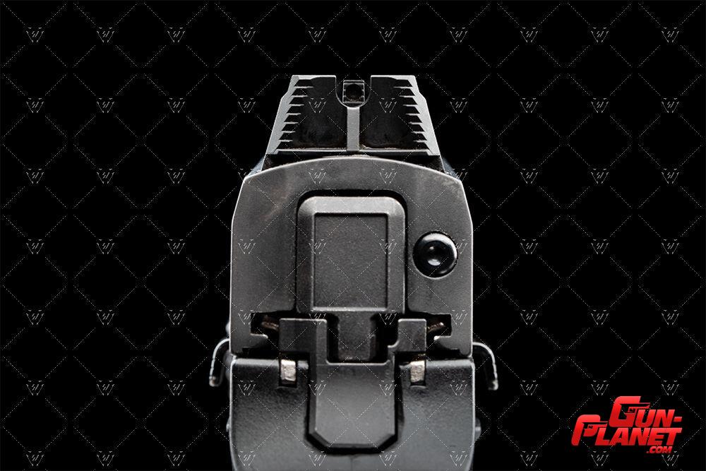 La textura dentada en la cara trasera de la mira delantera y trasera evita los reflejos de la luz.