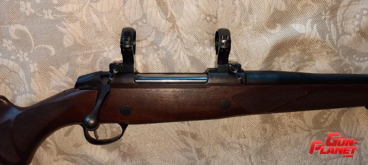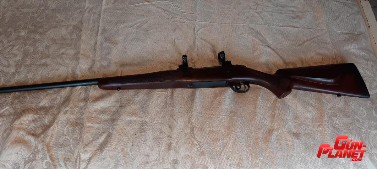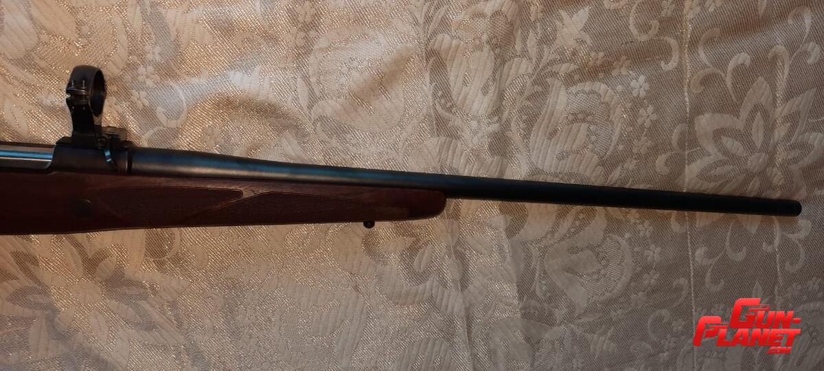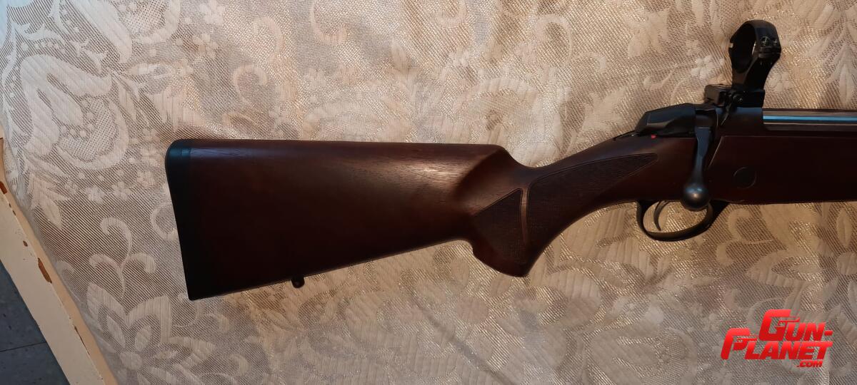 Sako 85 calibre 375 Holland y Holland Mágnum culata original de Nogal con anillas optilock de quita y pon de 30 con reducción a una pulgada. El fusil se encuentra inmaculado. Casi nada de uso