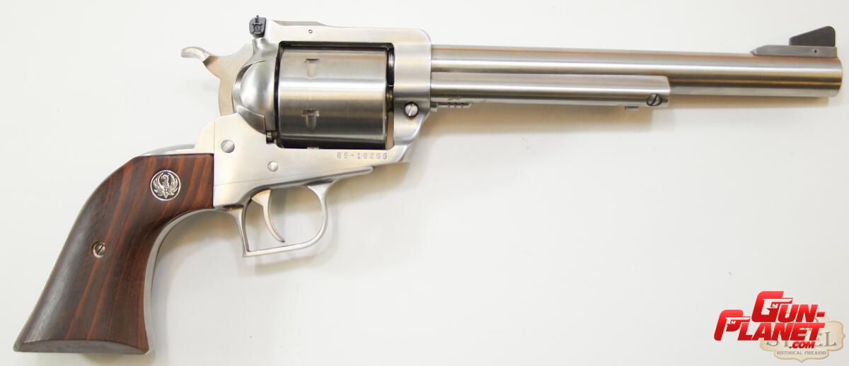 Up for Auction is a Beautiful Ruger New Model Super Blackhawk Chambered in 44 Magnum. This revolver features a 7.5 inch barrel with sharp reflective rifling. The action is buttery smooth, it locks up solidly, and times well. The wooden grips are in great shape but stick out a tiny bit, and the finish shows little to no signs of use and wear. A must have for any hunters or fans of the single action army platform.