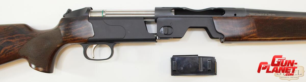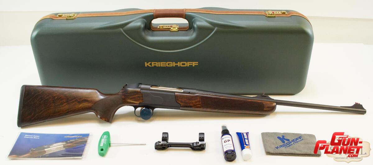 Up for auction is a German made Krieghoff Semprio chambered in 308 winchester. This beautiful piece of German craftsmanship in a reverse pump action rifle. The action is designed so the shooter can place their hands on the grip and forend and not have to change their hand placement in order to reload the rifle. The action slides forward while the stock stays in the shoulder. The rifle sports a 21 inch barrel with sharp reflective rifling and a length of pull of 14.5 inches. This rifle is a wonderful piece of craftsmanship. From the finely fit and machined action, to the stunning hand checkered wood furniture with a beautiful matte finish. This rifle also comes with a felt lined locking carry case, a quick detach scope mount, a manual, and cleaning gear / tool. An incredibly rare rifle built for the most bespoke of hunters and sportsmen. A perfect rifle to make the crown jewel of any sportsman's collection.