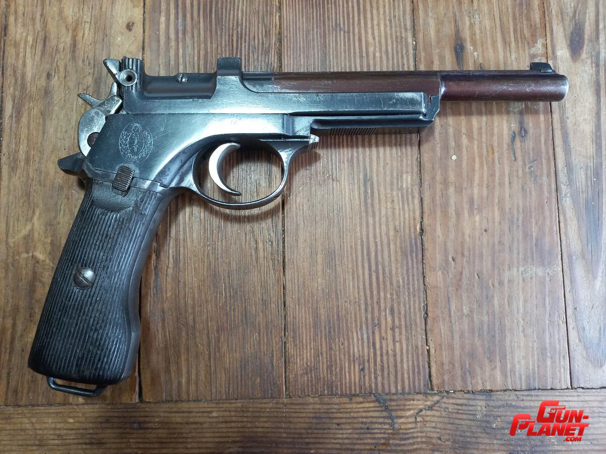 Pistola Mannlicher Ejercito Argentino 1905 con escudo y pavón original , en muy buenas condiciones , calibre 7.63 Mannlicher . Acompaña algunas municiones . No permuto.
