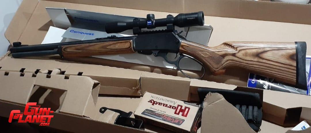 Fusil palanquero Marlin 1895 GBL culata laminada, mira zeiss conquest 2.5-8x32. Con menos de 50 tiros. Con manual, caja original, prolongación de martillo lateral para usar con mira telescópica. Se puede ver en el Tiro Federal Argentino de Luján. Con mira ZEISS CONQUEST 2.5-8x32