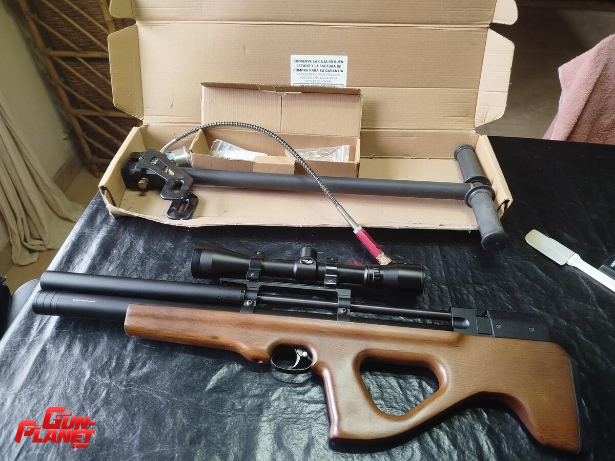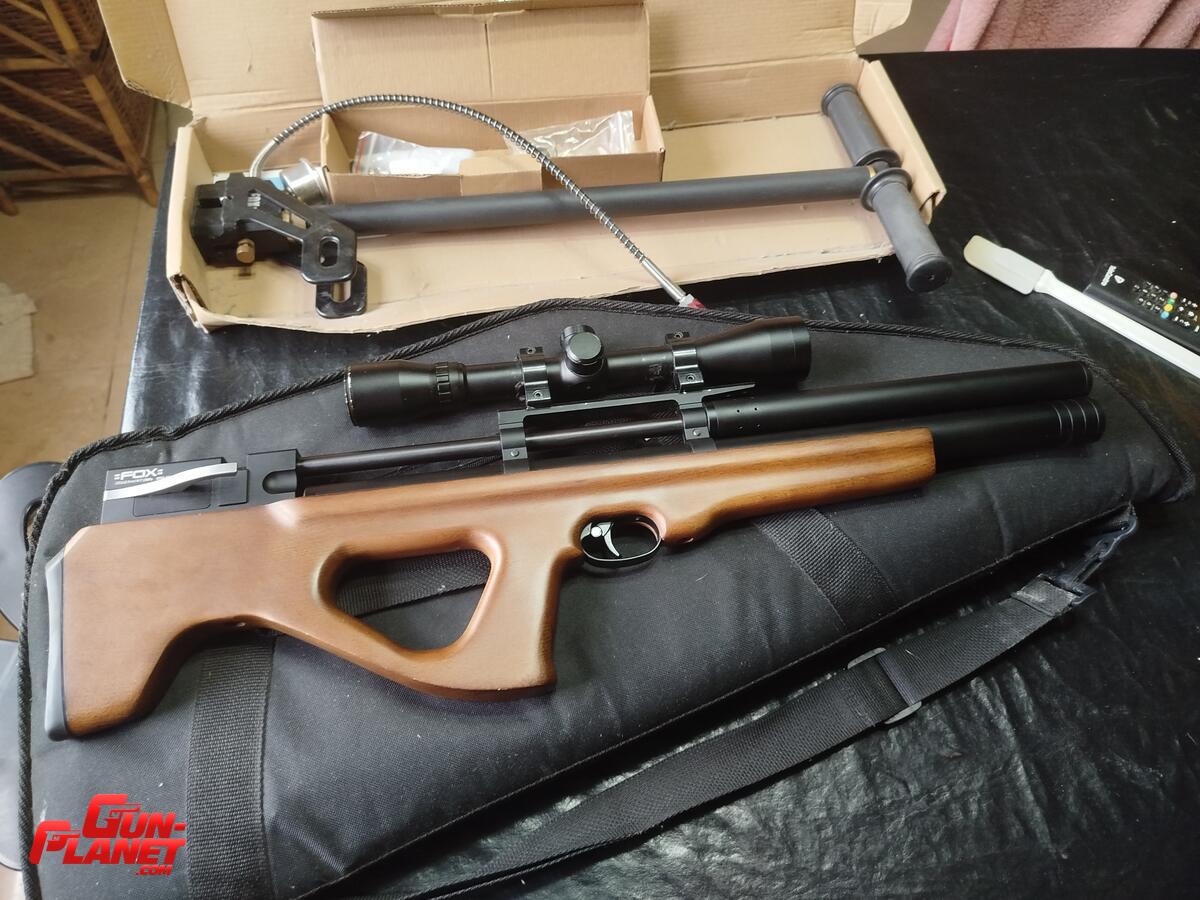 Rifle Fox p 15 con una caja solamente de prueba, en su caja con accesorios originales , inflador Fox nuevo con su caja y accesorios, funda del rifle , mira shilba 6*40 todo en excelente condiciones.