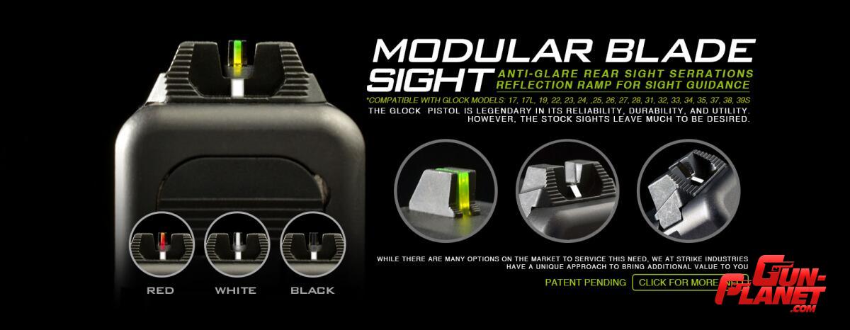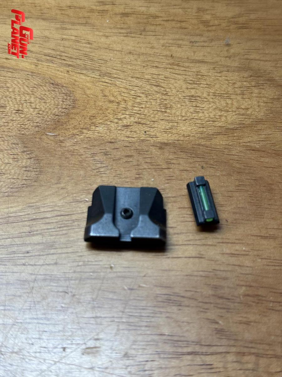 mira de fibra y alza lisa negra, ideal tiro deportivo, compatible con todas las glock.