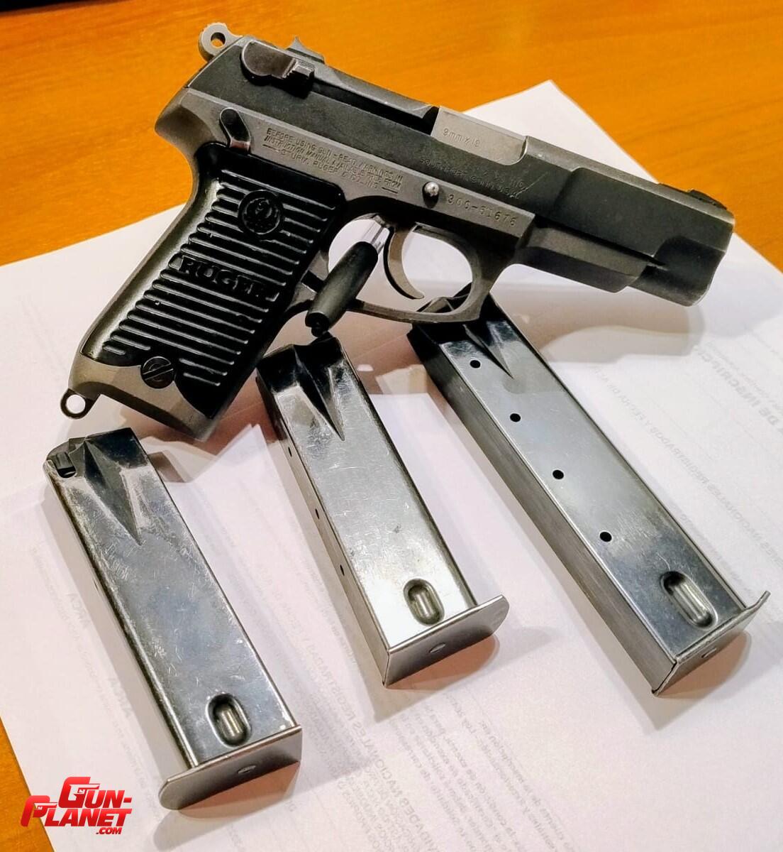 PISTOLA SEMIAUTOMATICA , RUGER P 85 , CALIBRE 9 MM , 2 CARGADORES EXTRAS, POCO USO