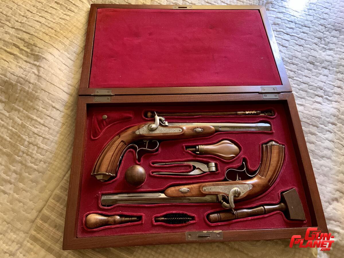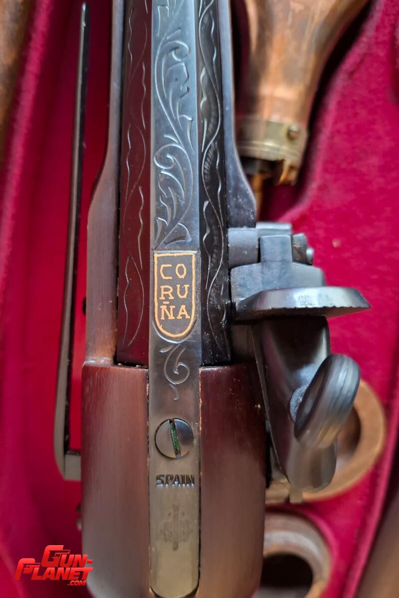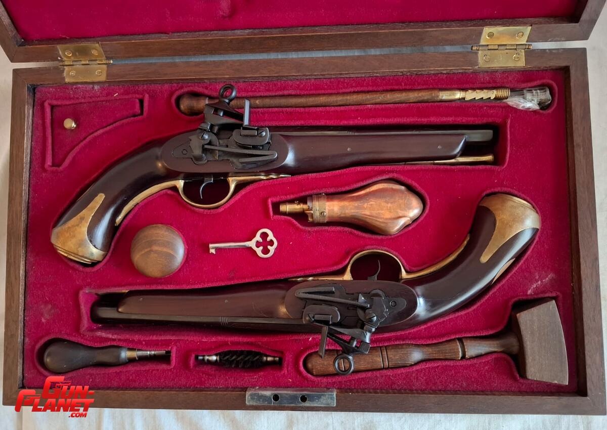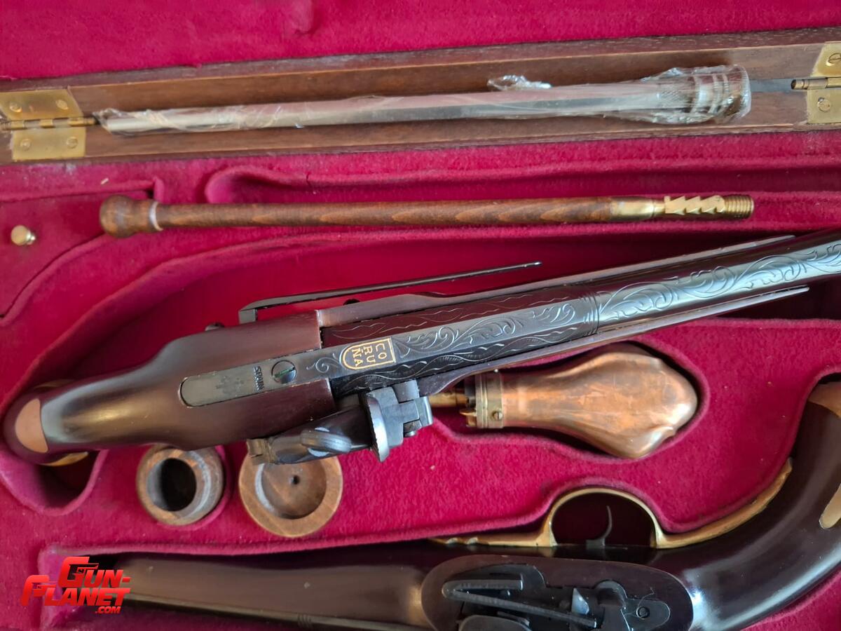 PISTOLAS DE CHISPA, EN ESTUCHE, CAL .58, CAÑONES ESTRIADOS, NUNCA DISPARADAS, FABRICADAS POR SANTA BARBARA - ESPAÑA - REPLICAS DE LA GUARDIA MONTADA REAL SIGLO XVIII - POSIBLEMENTE FABRICADAS DECADA DEL 50/60 - HERMOSO PAVONADO CON GRABADOS - CAJA PRESENTACION IMPECABLE CON ACCESORIOS - No requiere declaración ante RENAR - ESCUCHO OFERTA RAZONABLE - No hago envíos - Entrego TBA - CABA.