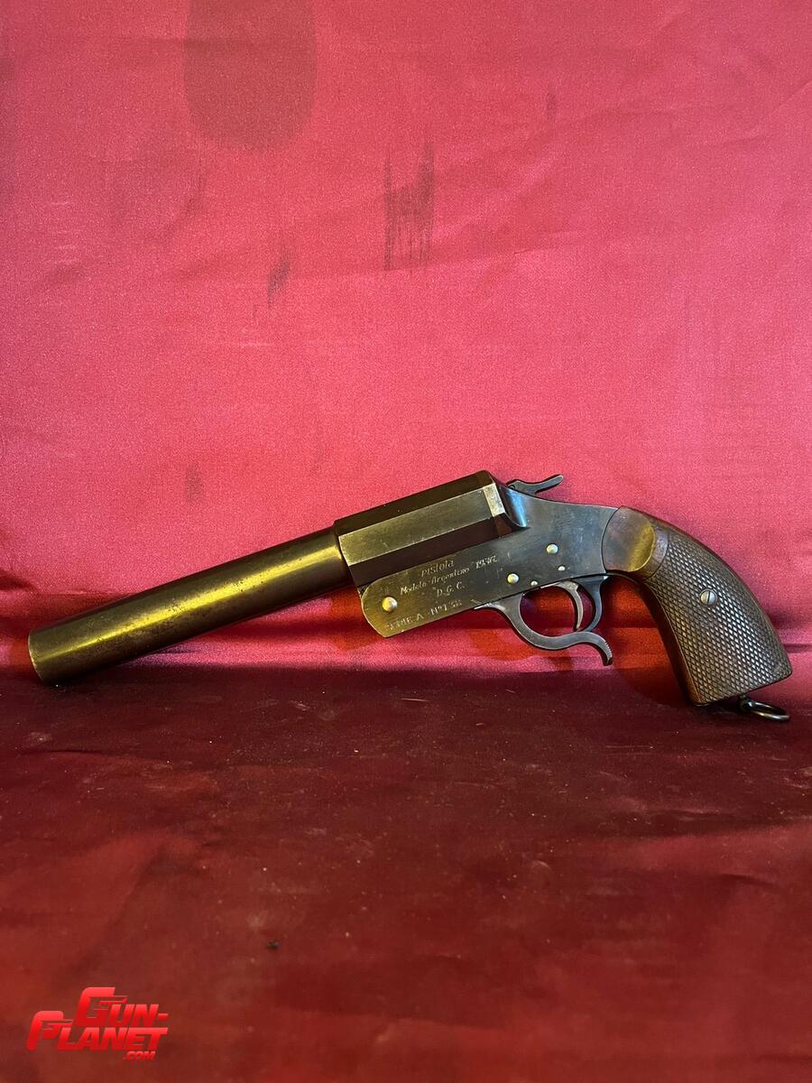 PISTOLA DE SEÑALES NACIONAL DE HAFDASA MODELO CRIOLLO 1936 calibre 26,5mm - Serie A, numero de fabricacion 138 - incluye 3 cartuchos de señales para exhibirla, funda cartuchera original de cuero.