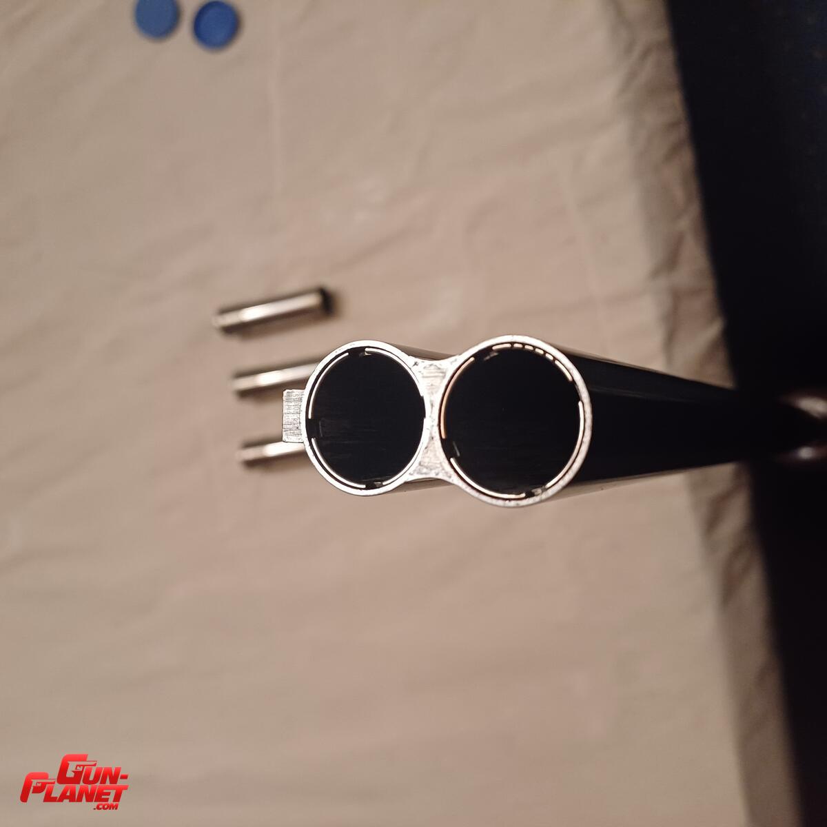 Largo de caño 71 con banda ancha de 10 mm polichoques en ambos caños cantidad 5 choques modelo optima bore extractores automaticos monogatillo dorado y selector de tiro