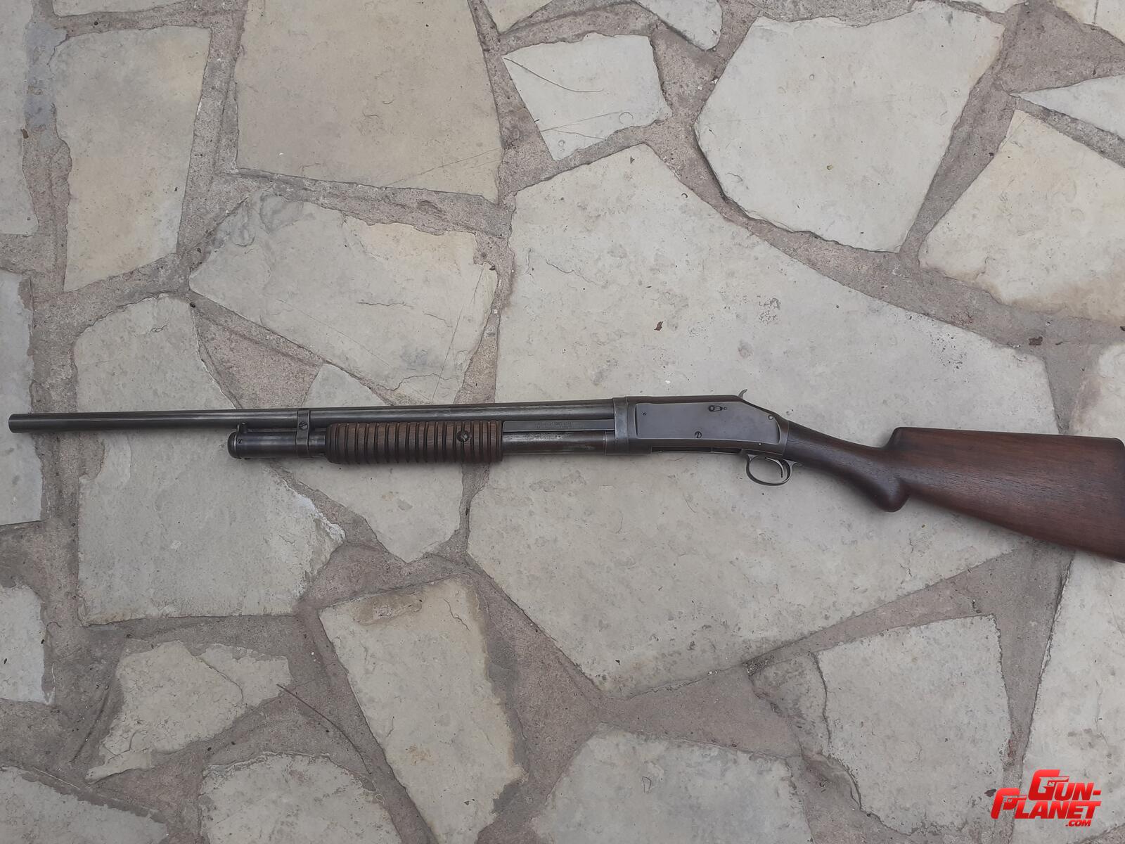 >> Hola!! Si, esta es el modelo 1897, de cartuchos modernos. El cajón esta impecable y sus tornillos también (tiene muchisimos). El cañón tienen algunas picaduras.