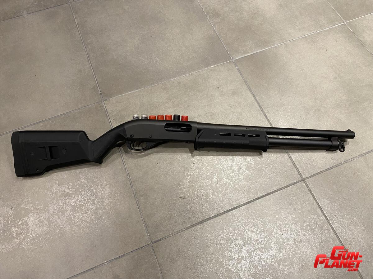 De caza, de uso policial y militar, esta es el modelo Riot (Anti Disturbios) con el marcaje correspondiente en el cañón "CVL", y con un rango de números de serie que ubica su fabricación en 1912.