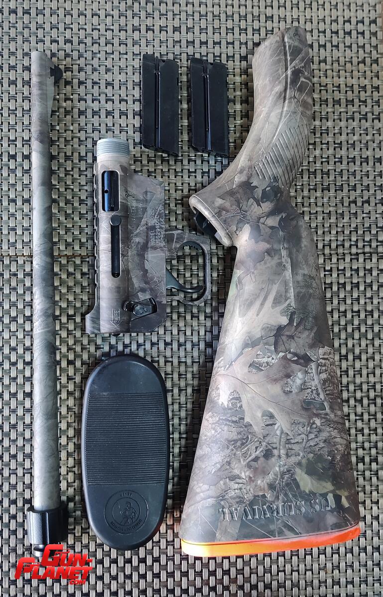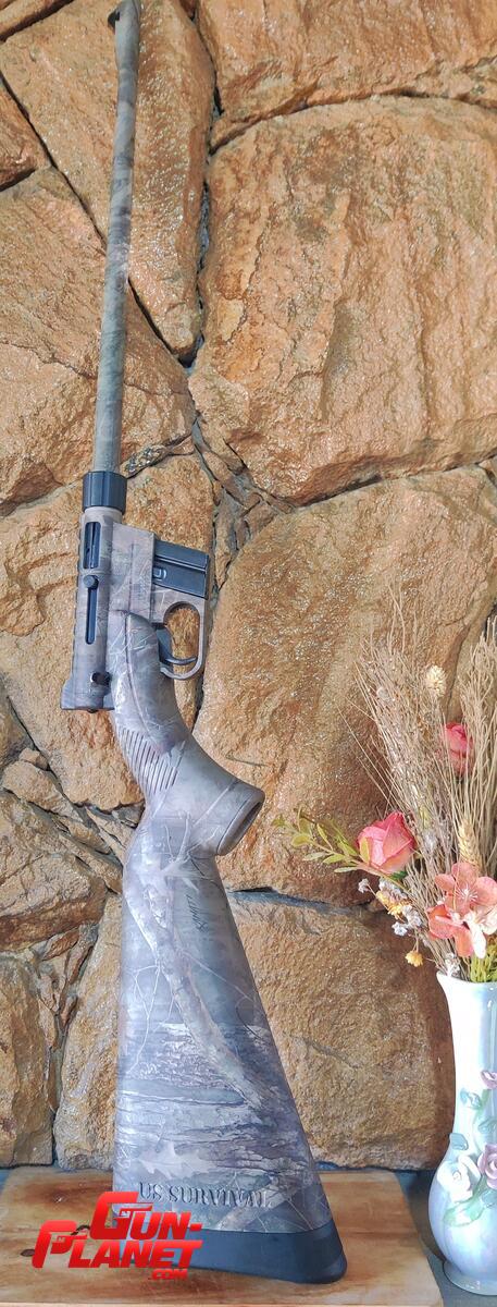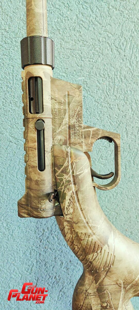 Carabina Semiautomática de Supervivencia HENRY_Modelo H002C_Calibre 22 Plg_Provista con 2 cargadores de 8 disparos cada uno_Color camuflaje occidental Timber-Viper_Peso 1,6 kg_Sus piezas se desarman y guardan en su culata de polímero hermética la cual mide 48 cm y flota_Cañón robusto de 40,9 cm de largo en acero recubierto de plástico ABS resistente con un revestimiento protector para una resistencia total a la corrosión_Largo Total 89 cm _Incluye riel superior para colocar miras telescópicas u opticas._