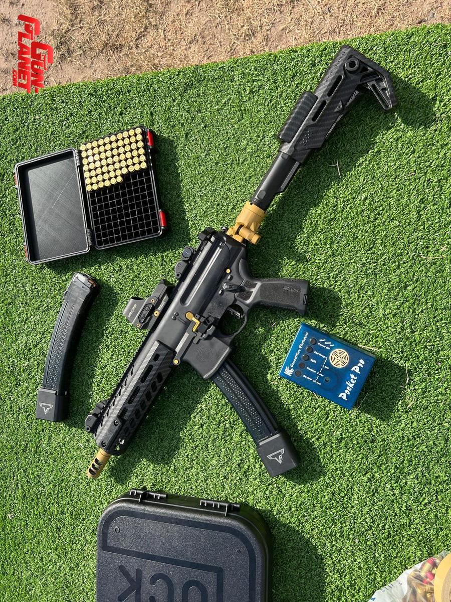 Carabina semi auto sig 9mm , lista para competir , los mejores accesorios que se puedan comprar , niutruro en partes especificas , culatin rebatible , armado y puesta a punto por la Brama Custon Guns , tres cargadores con bases Taran , se entrega con los accesorios originales , saludos