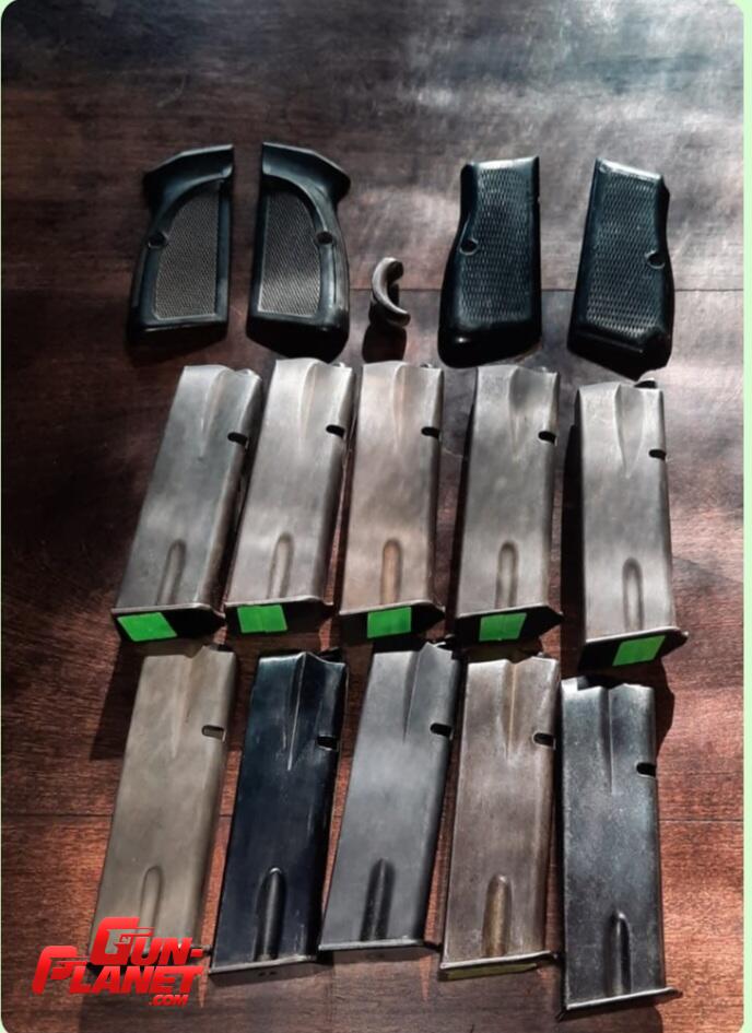 Vendo lote de 10 cargadores usados para browning funcionando, cargan 13 municiones 9mm, más 2 cachas y una zapata.