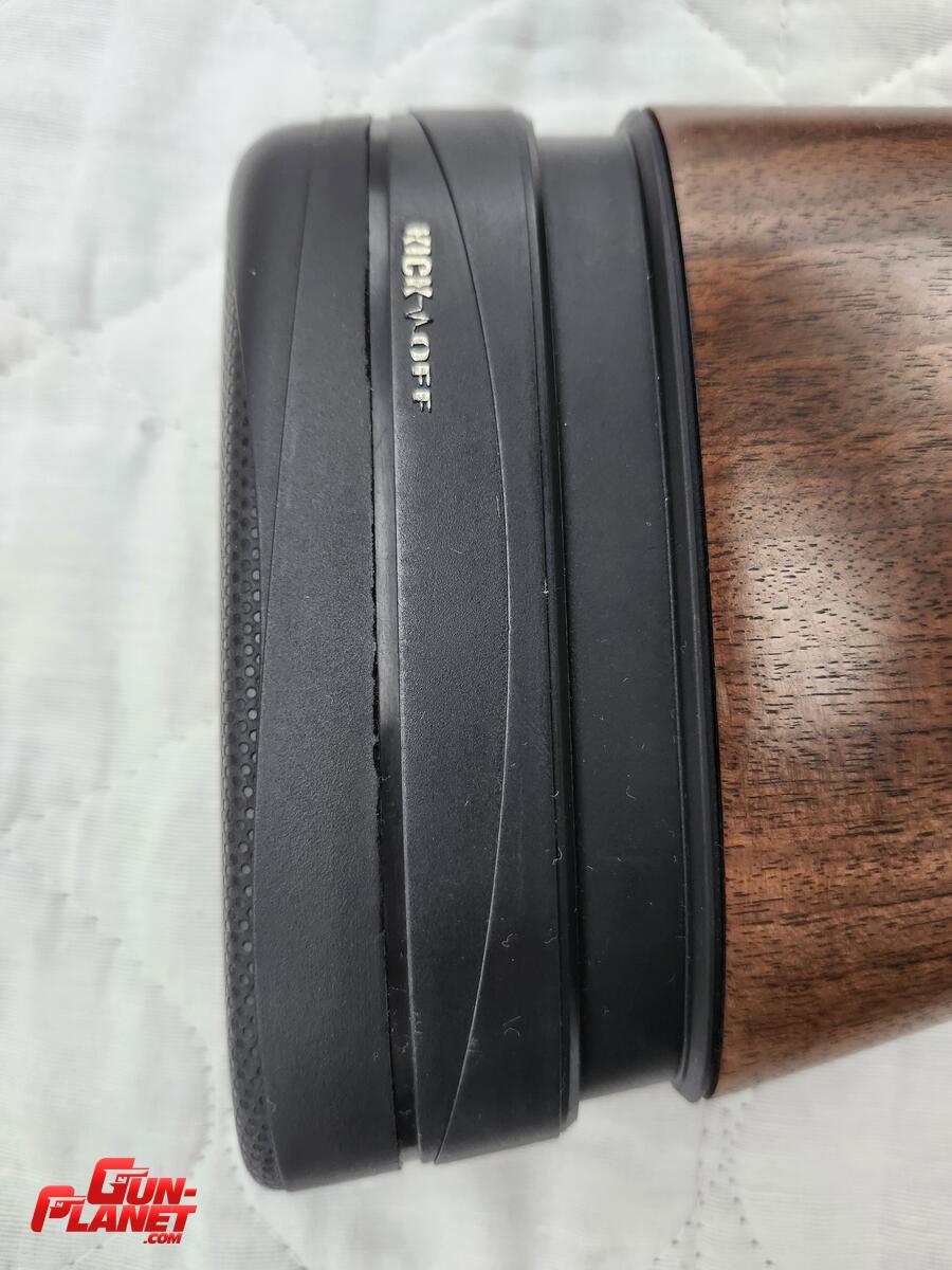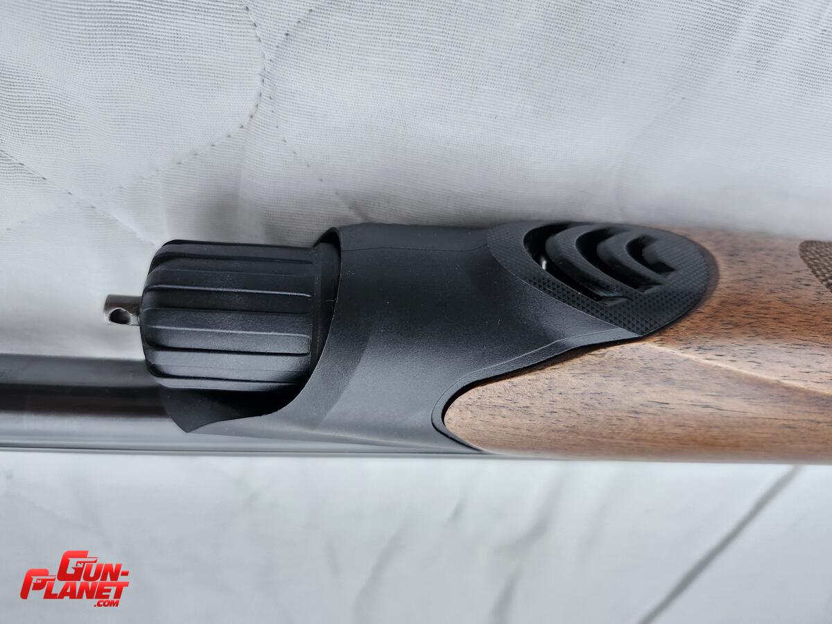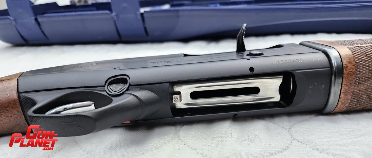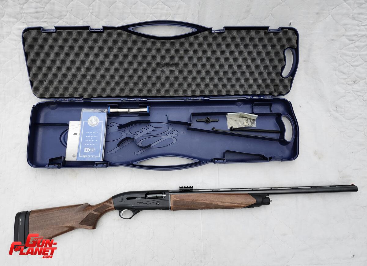 Escopeta Semiautomática. Calibre 12. Cañón de 71 cm. Recámara de 3,5 pulgadas. Banda ventilada. Tres Optima Choke HP (High Performance) intercambiables. Cantonera Kick Off con reducción de retroceso. Riel Picatinny. Sistema de recuperación por gases. Báscula niquelada. Terminación nogal pavonado.