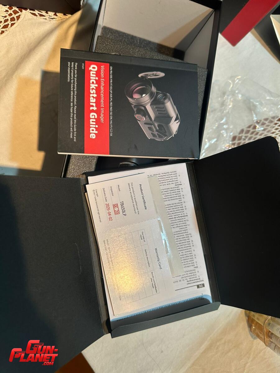Vendo clip on térmico GUIDE TB650LP versión tope de gama con telémetro incluido como nuevo, 1 solo uso, esta versión de térmico a comparación de otras marcas permite montarlo SIN necesidad de calibrarlo (cosa que otras marcas sí o sí luego de montarlo hay que realizar un disparo para calibrar el térmico con la mira), incluye dos pilas recargables originales, cargador original, cables originales, manuales y papeles de garantia, y acople para miras desde 40 a 56