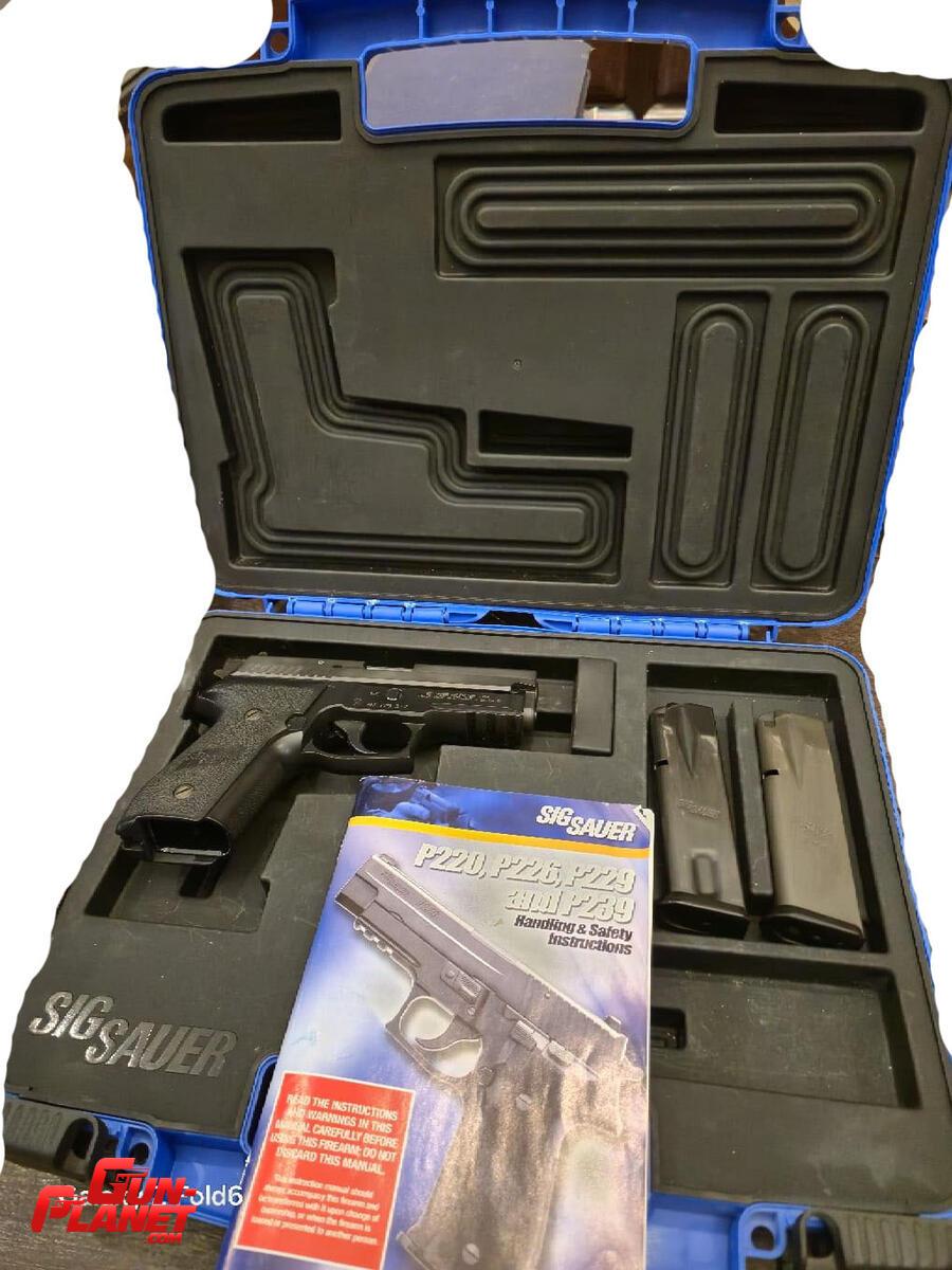 Pistola Sig Sauer P229, Con sistema DPM de control de retroceso y Mira Laser. Excelente estado con caja original y manual.