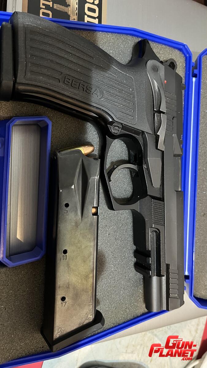Viene con su caja 5 cargadores mecgar, además la cacha original y un kit con varios resortes de repuesto. Acción doble 2,1kg simple 1kg.
