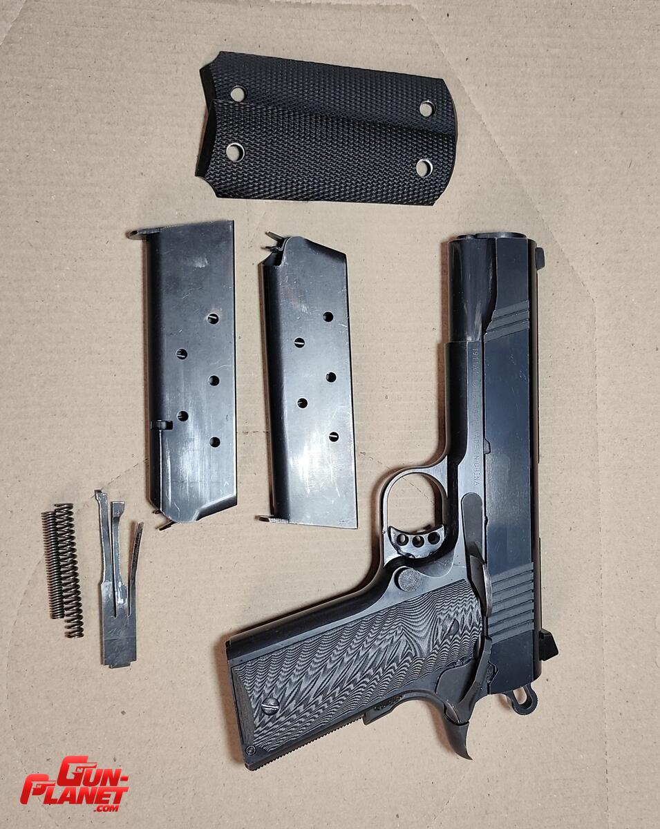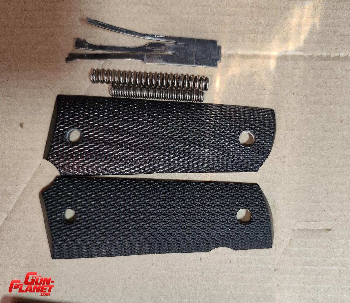 Pistola alivianada, se entrega también las piezas que se cambiaron, 2 cargadores, dos juegos de cachas