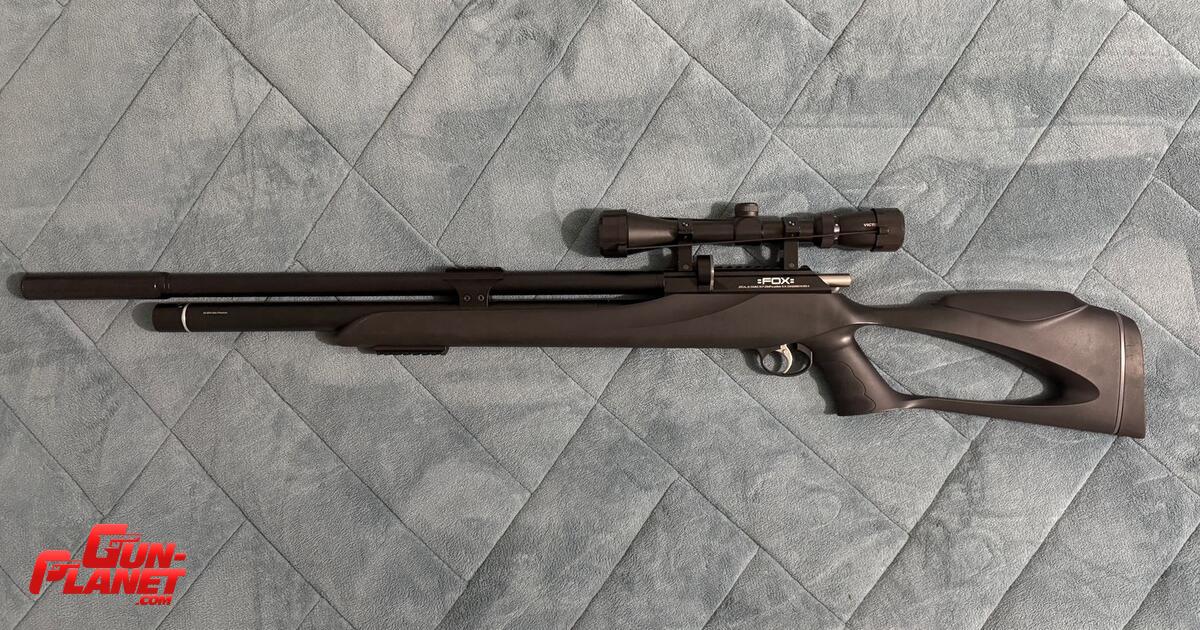 PCP FOX M25 . CAL 6.35 Con mira Vector Optics DE 3 a 9 x 40. Adicionales: pico de carga, cargador rotativo de 6 , inflador FOX con filtro de humedad.