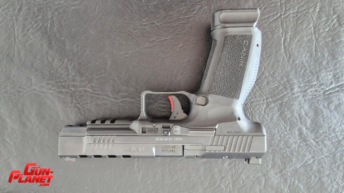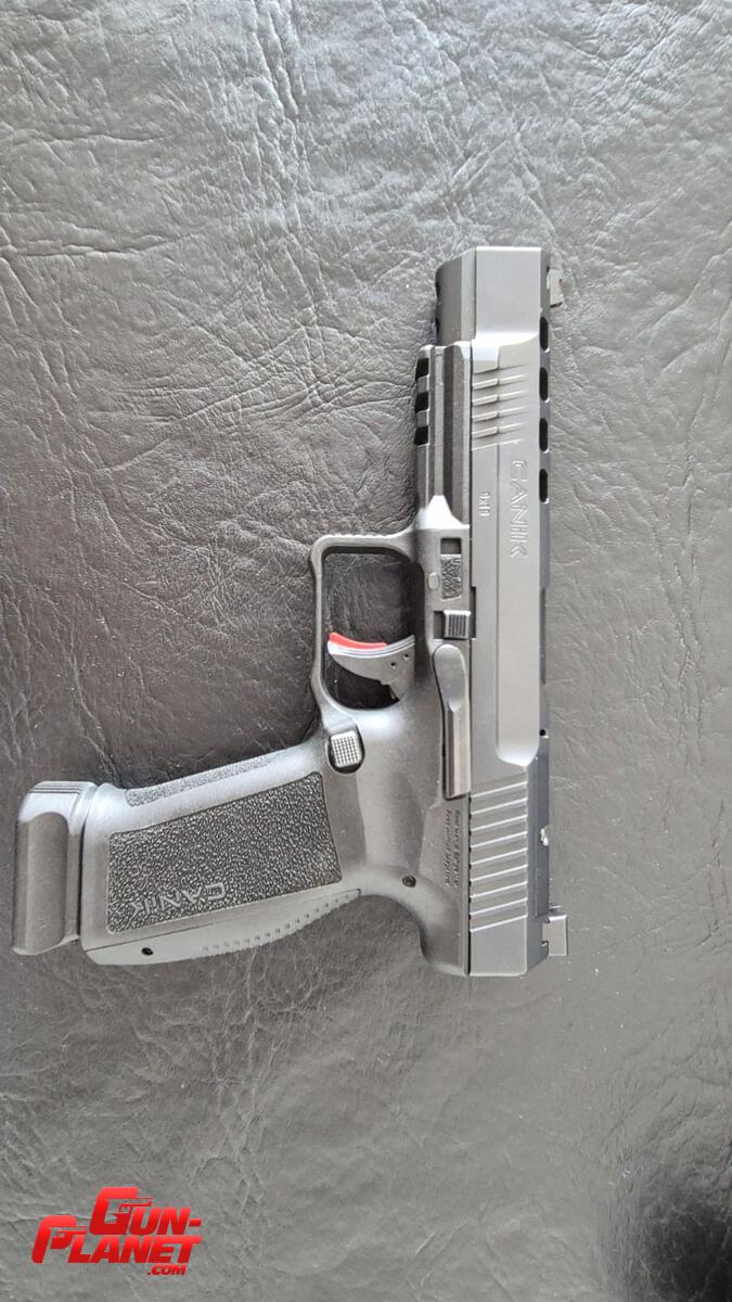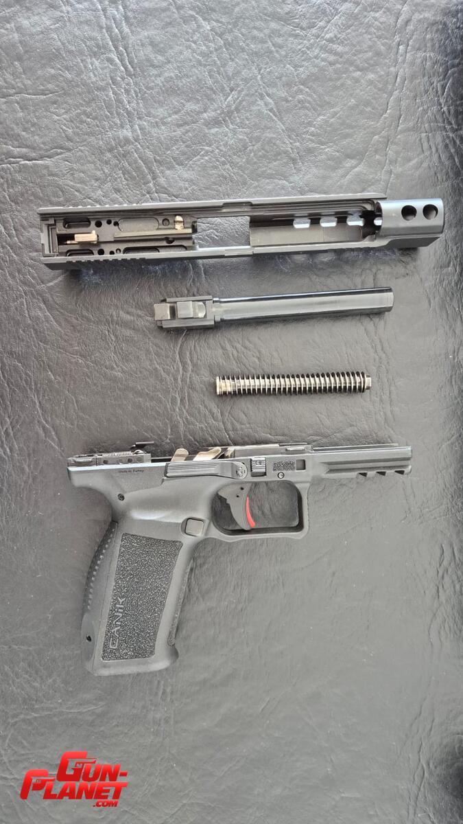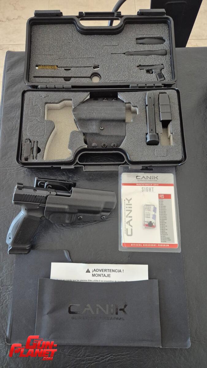 Backstrap adicional, Holster marca canik, platos para miras opticas, embudo, baquetas, punch, cargador rapido y 2 cargadores de 18 tiros.