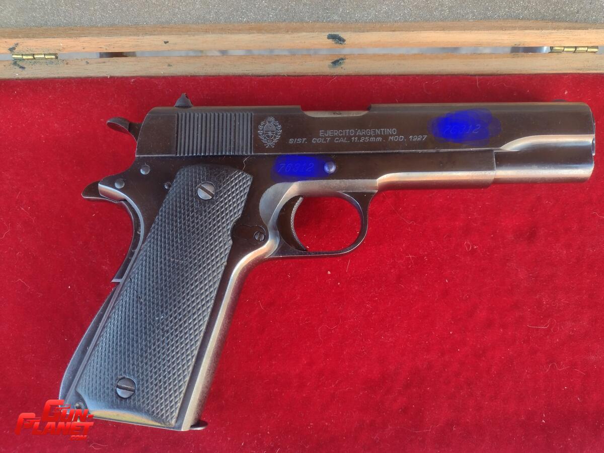 Vendo Sistema Colt 1911 Del Ejercito Argentino, TOTALMENTE ORIGINAL,con su funda original y otra interna de cuero,con dos cargadores no originales,se entrega al firmar transferencia con trámite urgente NO ACEPTO PERMUTAS NI TAMPOCO HAGO ENVIOS ,s$s billete cara grande en excelente estado