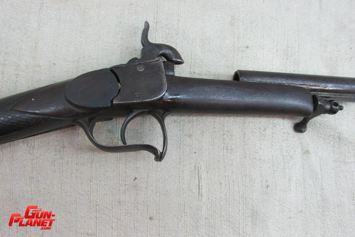historia: e interesan las armas de fuego de retrocarga novedosas de mediados del siglo XIX, y esta es una arma de fuego interesante y poco común, fabricada alrededor de 1860, que demuestra el sistema Gaubert. El período entre 1840 y 1860 presenció un auge en el desarrollo de armas de fuego de retrocarga y una extraordinaria cantidad de diseños innovadores y patentados. Jean-Baptiste Gaubert fue un armero francés cuyo taller se encontraba en la calle 13 de Notre Dame des Champs. También estuvo representado en Lieja desde 1859 por Spirlet, empresa que fue adquirida en 1863 por P. Dusautoit.