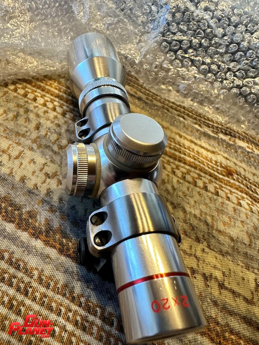 Excepcional mira Simmons japonesa 2x20 fabricada en 1989 , para arma corta apta para todo calibre incluye anillas originales ruger inox
