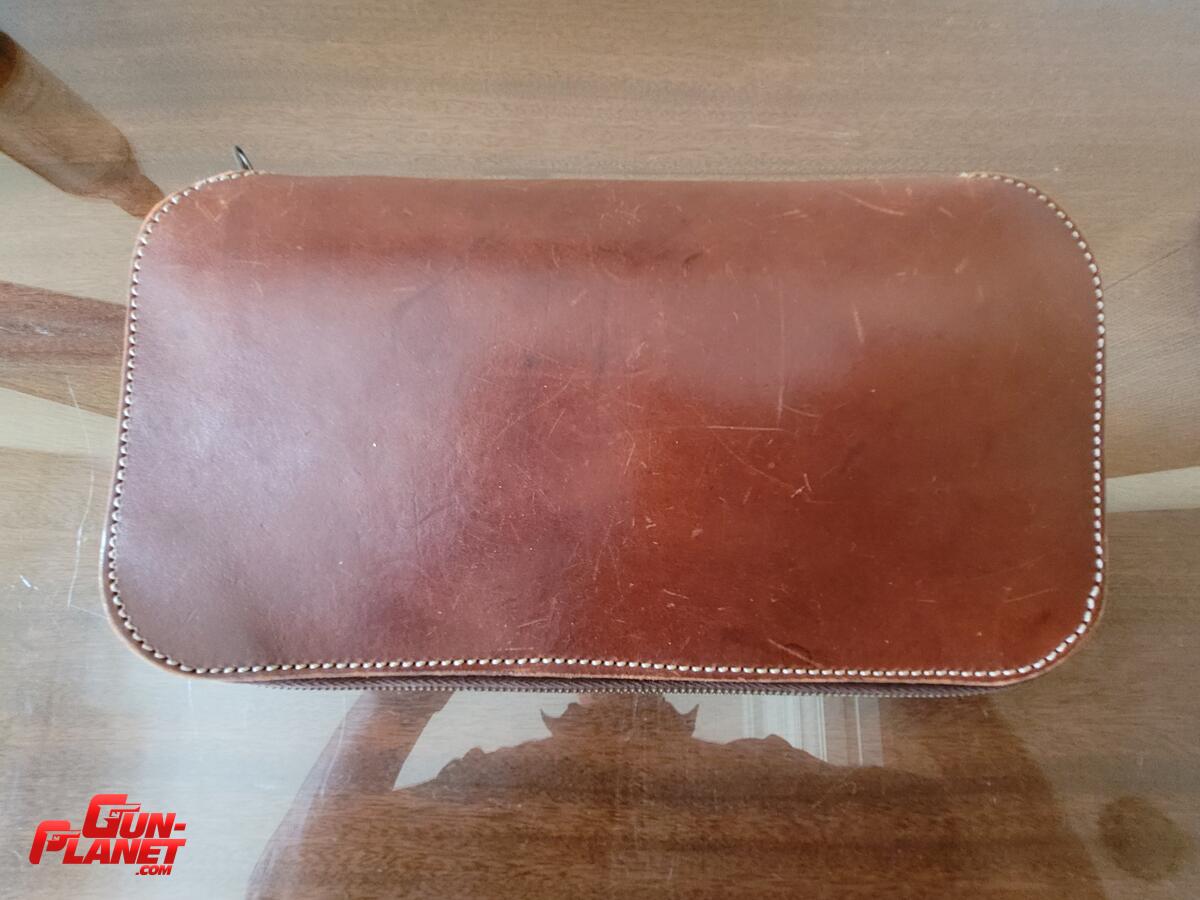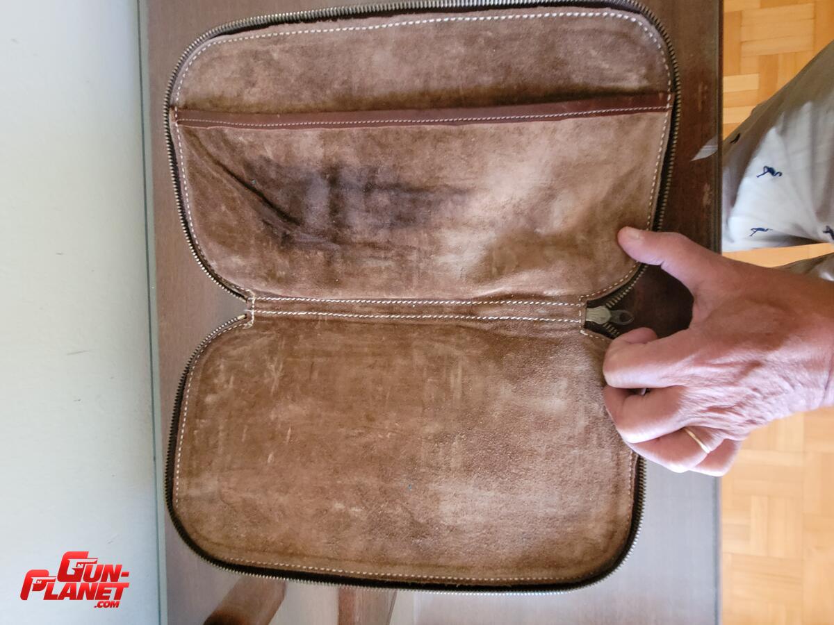 Estuche cuero. Década del 80. Medidas 34 x 19 cm.