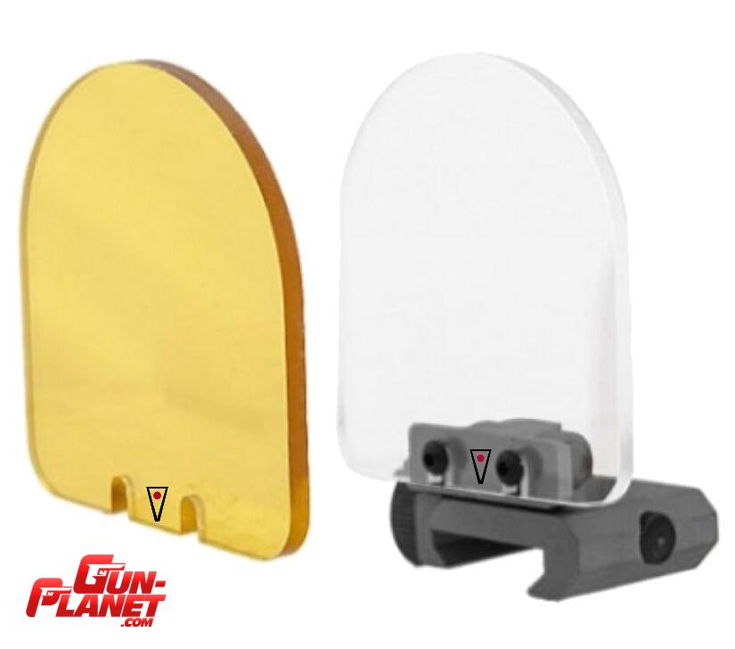 Protector de mira, riel 22mm metal bk, 2 acrílicos (transparente / amarillo) 5,2x7,2cm x 3mm de espesor.