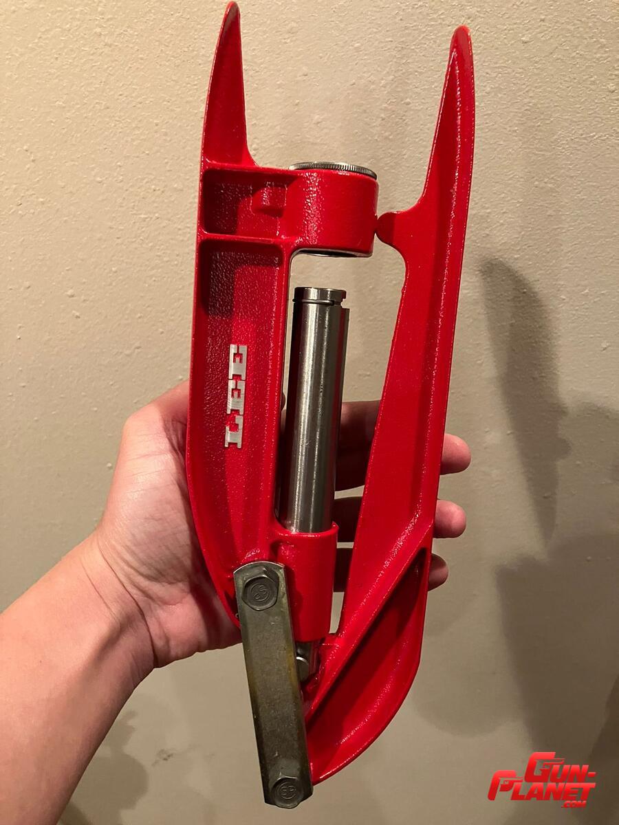 >> Buenas tardes, viene con el set de die Dillon y el último Die que está colocado en la máquina es de marca Double Alpha 2 en 1 ( baja la punta y hace crimp)