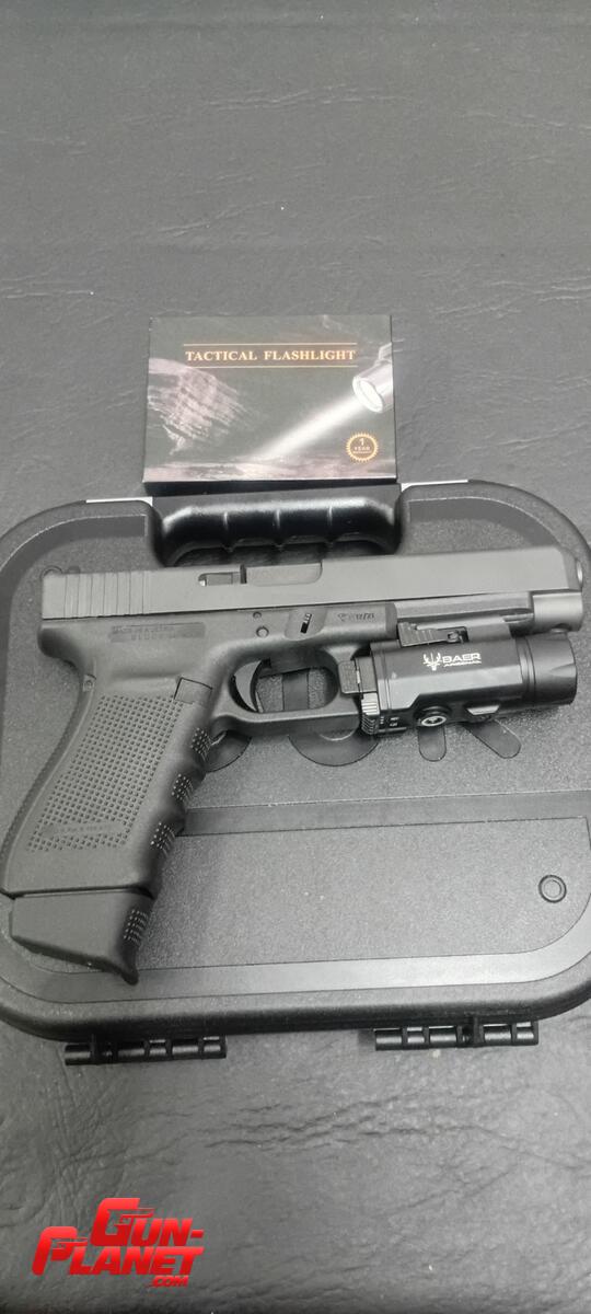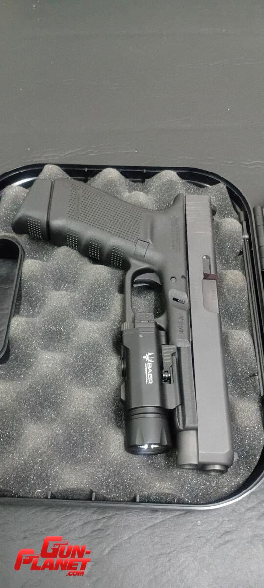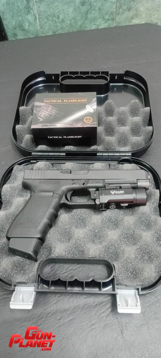 Glock 41 g4 con linterna y láser calibrada a 10 metros masomenos. Cargador de 15 y 13 tiros. Con su caja manual y todo lo que trae de fábrica. 0km. 0 tiros. Nunca fue disparada. Se entrega con trámite urgente y tarjeta azul. Vendo a 1450usd. No permuto. Solo a usuario con clu vigente de 1 año mínimo.