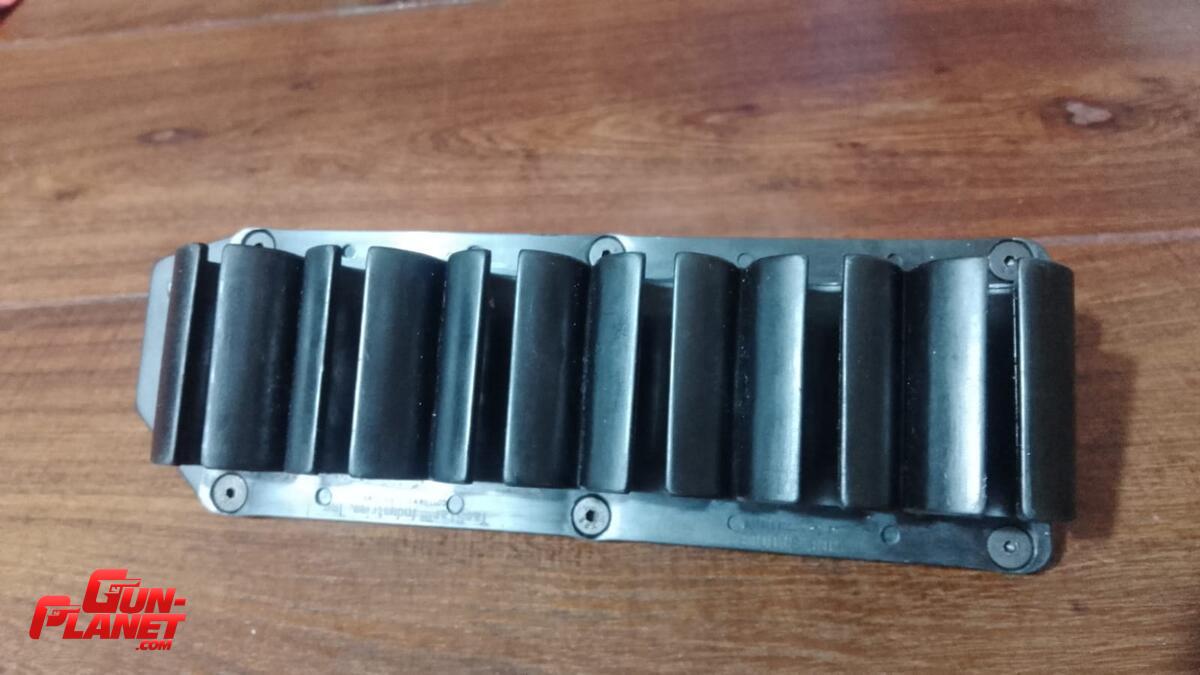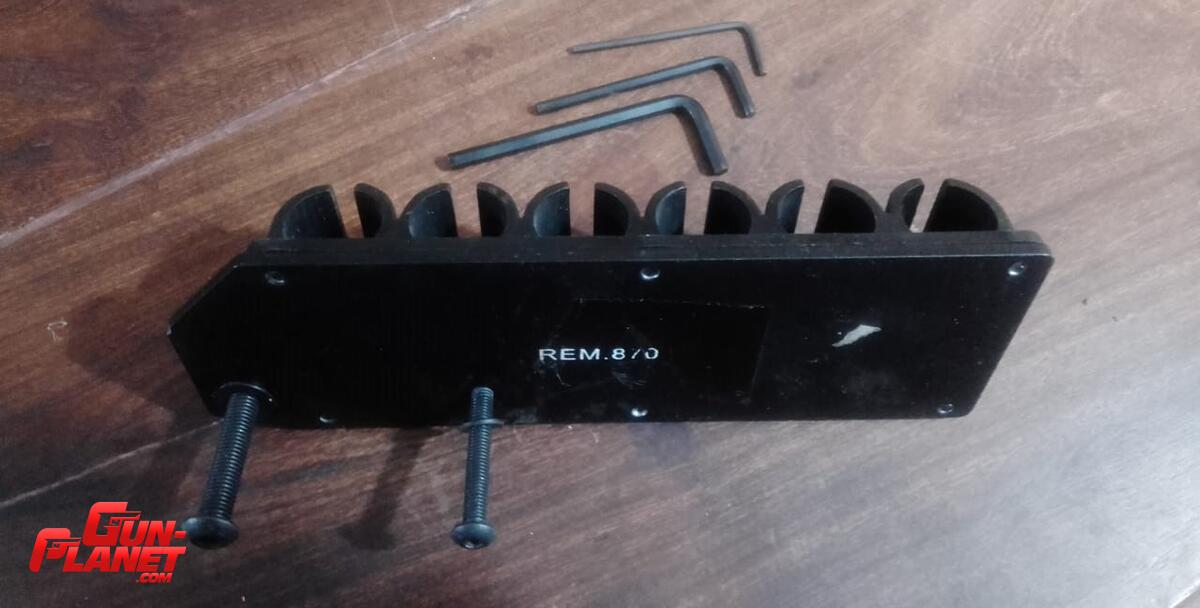 Porta cartuchos Side 12 gauge shotgun shell holder de alta resistencia para escopetas Remington 870. Incluye juego de llaves allen para su colocación.