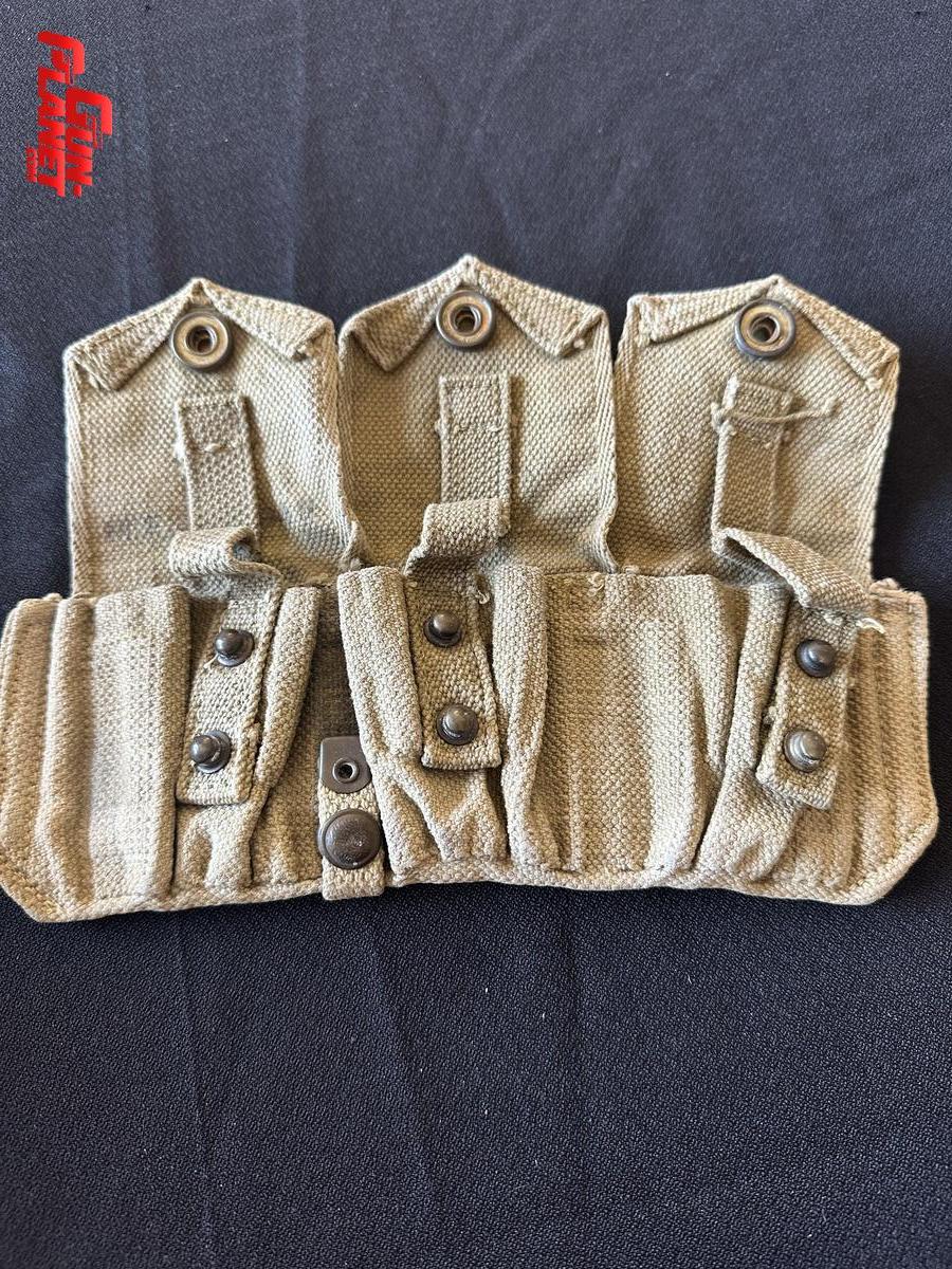PORTA CLIPS DE MUNICIÓN GARAND DE 3 BOLSILLOS COLOR KAKI ORIGINAL WWII
