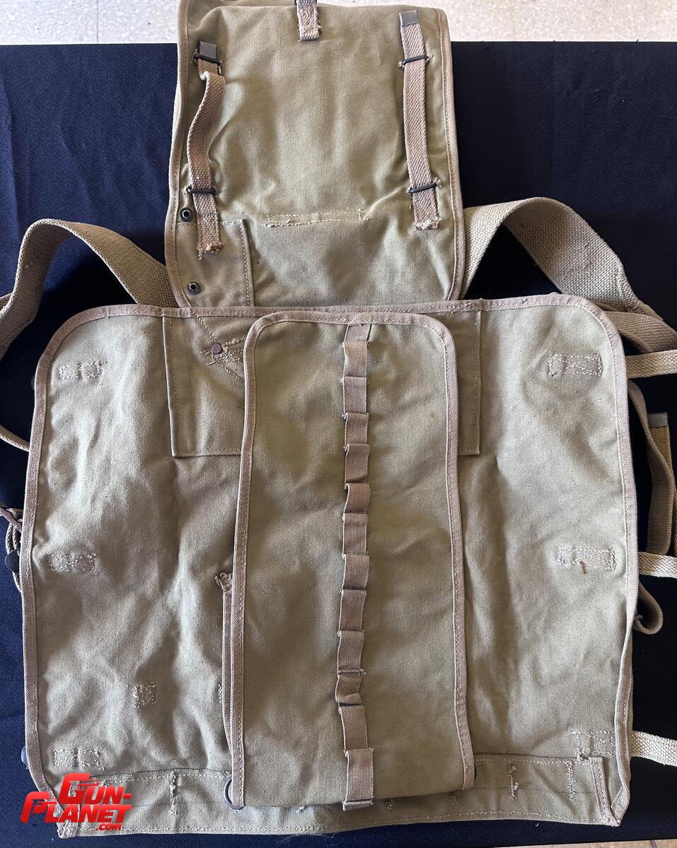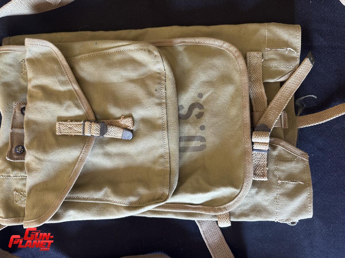 The M-1928 Haversack was the standard field pack for US Army infantry from the early 1930s through much of World War II, until it was superseded by the M-1944 and M-1945 systems. Unlike a traditional backpack, it is a complex modular system of canvas flaps, straps, and buckles designed to be worn over the shoulders and attached directly to the M-1923 Cartridge Belt or Pistol Belt.