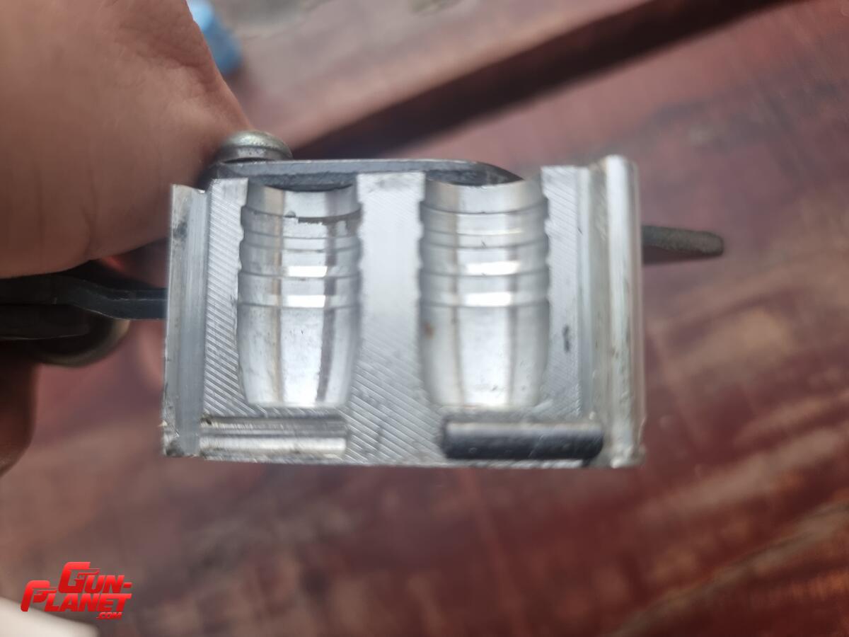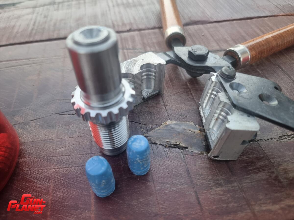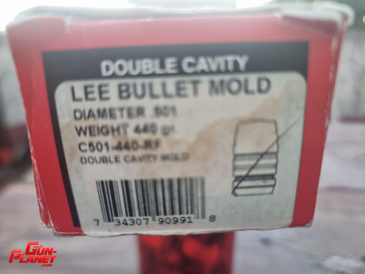Molde Lee 500 de 440 grains para gascheck. El molde deja una pequeña aleta frontal en la punta. El valor incluye el trafil 501 que se observa en las fotos.